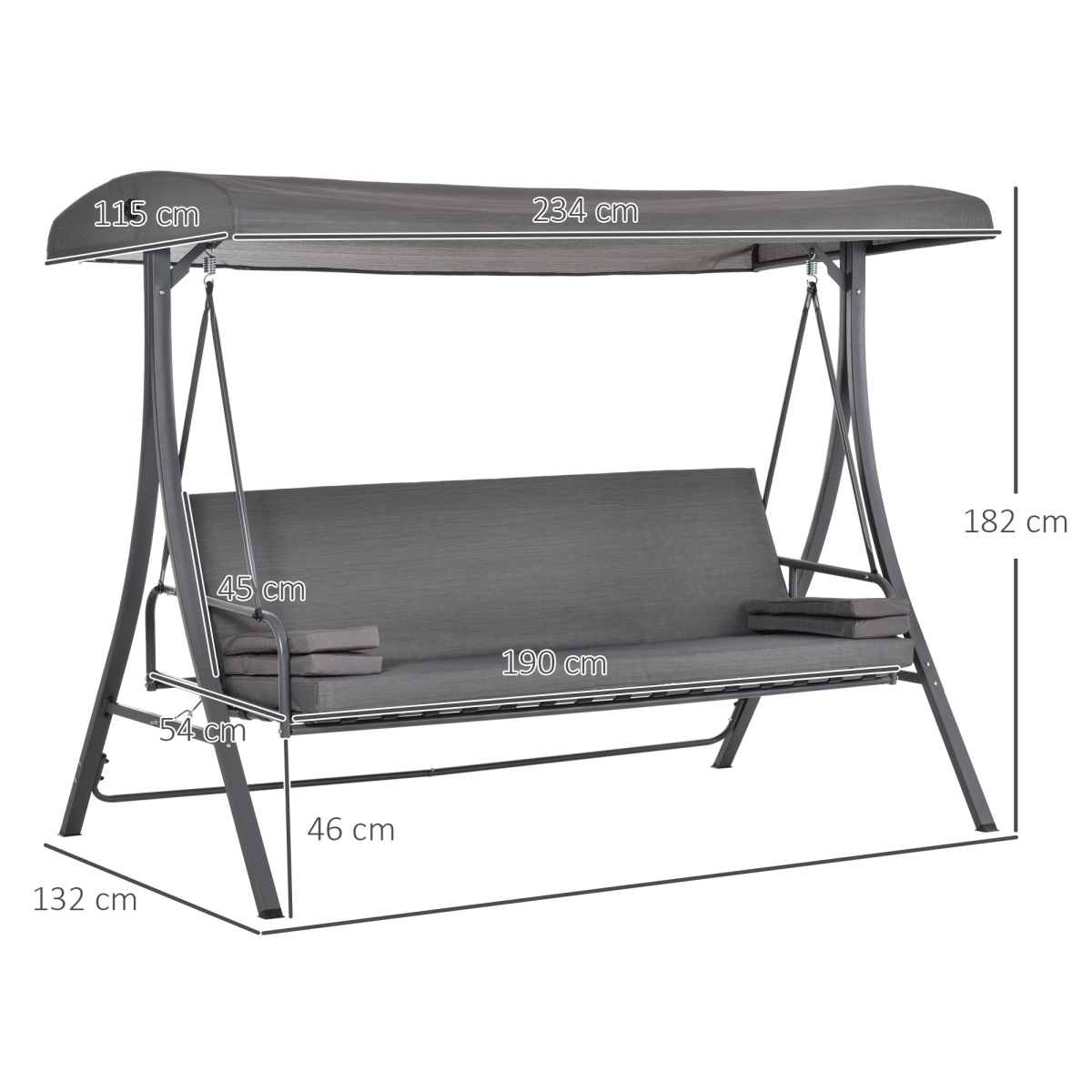 Durable powder coated steel frame, with 'A' shaped ends to keep it balanced