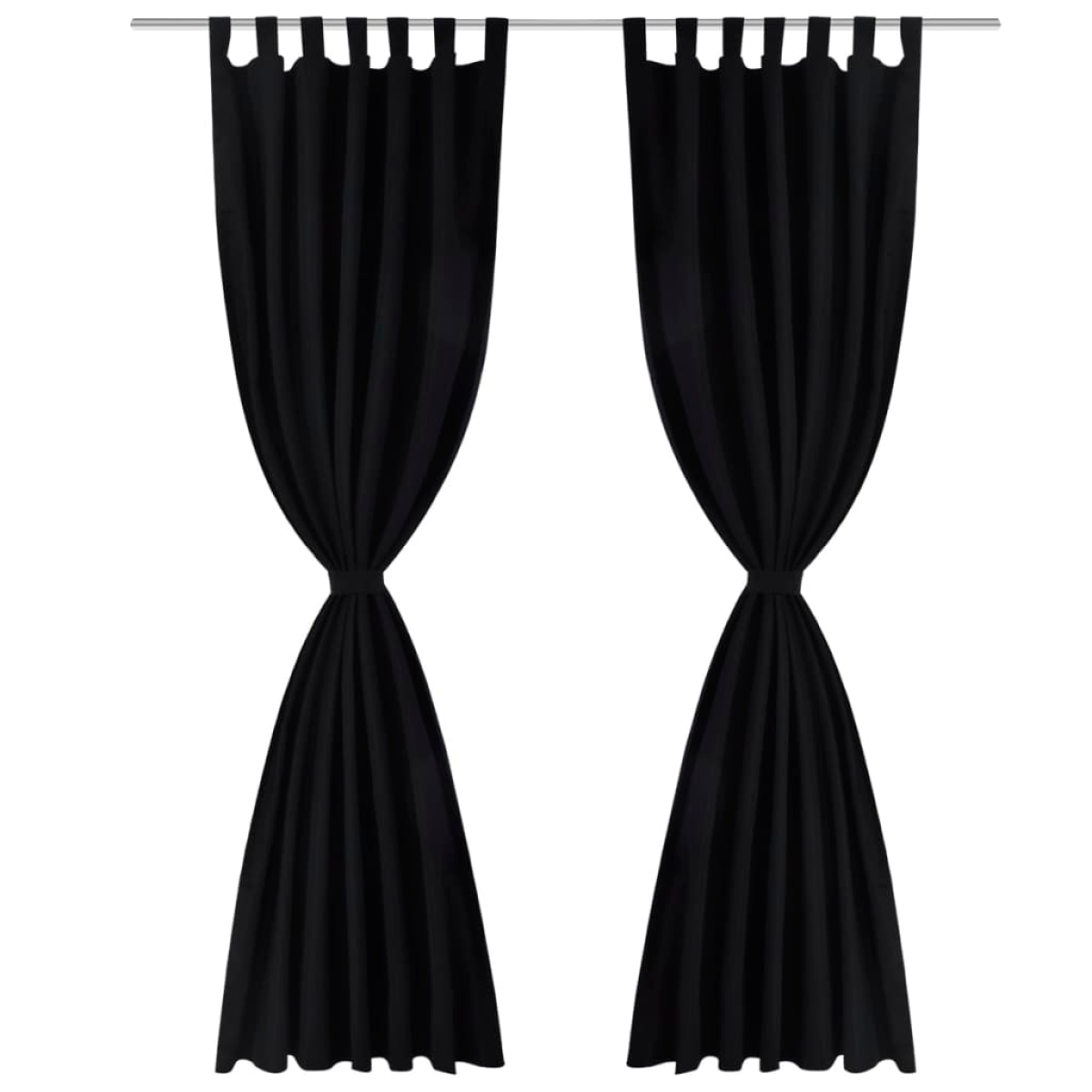 2 pcs Black Micro-Satin Curtains with Loops 140 x 245 cm