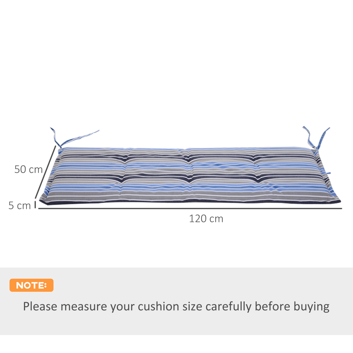 SET OF TWO: Perfect for refreshing your home and outdoor furniture quickly and easily. Colourful striped design in a slightly muted tone, injects colour without distracting attention away.DURABLE COVERS: Made from polyester, replacement cushions for rattan furniture are durable and tough, providing reliable use indoors and outdoors. Resistant to light stains, fading and water.OVERSTUFFED FILLING: Thick sponge of the garden chair cushions to provide comfort all day long. TIE FASTENINGS: Placed on the two corners, securing the covers to your bench to keep outdoor seat cushions in place all-day long.EASY CLEAN: Covers can spot cleaned with mild soap and warm water, left out to dry naturally, keeping replacement cushions for outdoor furniture fresh and clean.DIMENSIONS: 5T x 120L x 50Wcm.