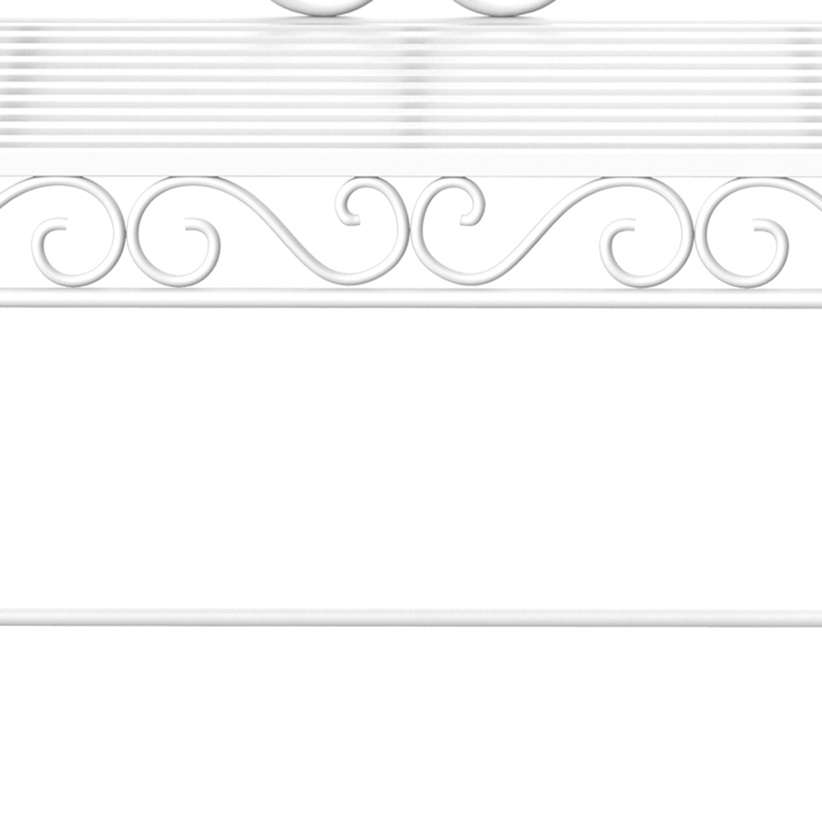 ELEGANT FLORAL GARDEN BENCH: Beautiful design make this metal garden bench looks great placed in gardens, parks, school yards, cafes etc.DURABLE STRUCTURE: With sturdy metal construction, the park bench has longevity in a fresh white finish.SAFE: Non-slip feet ensures safety and floor protection for the outdoor bench.WEATHER RESISTANT: Powder coated metal finish for reinforced strength and resilience against the elements.DIMEMSIONS: 113.5L x 50W x 96H cm. Assembly required.