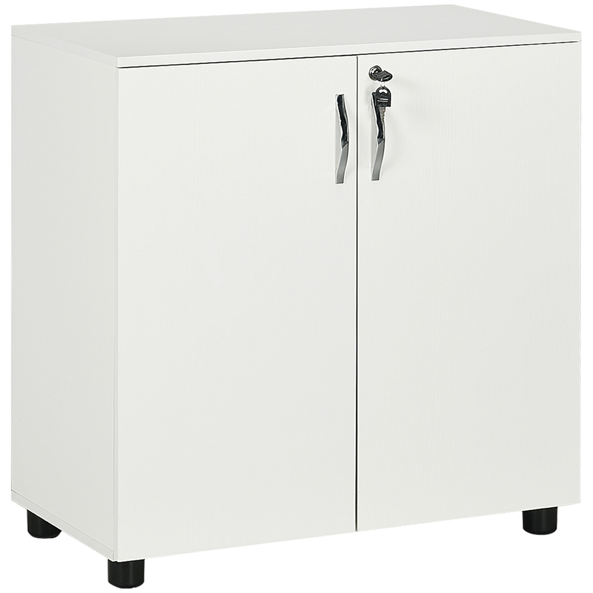 INNER TWO TIER: Divided by the inner longline shelf, it allows easy storage and organisation of your files, papers and other office equipment.LOCKABLE: Keeps the contents safe and secure whilst away. Comes with two keys.PARTICLE BOARD STRUCTURE: Durable for everyday use, finished in white which sits alongside your other office furniture with ease and freshens up the area in which it stands.MELAMINE COATING: Smooth, easy to clean and protected against light marks and damage. DIMENSIONS: 80H x 80W x 40Dcm. Each tier: 35.7H x 77W x 38Dcm.MAXIMUM LOAD 20KG. ASSEMBLY REQUIRED.