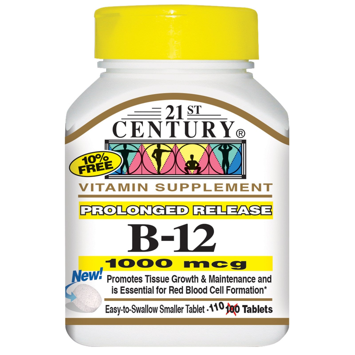 10% Free Vitamin Supplement Promotes Tissue Growth & Maintenance and Is Essential for Red Blood Cell Formation New! Easy to Swallow Smaller Tablet 21st Century...For a Healthier Future Gluten Free Laboratory Tested - Guaranteed Quality 21st Century Vitamin B-12 (Cyanocobalamin) promotes maintenance and growth of tissue and is essential for red blood cell formulation. Prolonged release vitamins slowly release nutrients into the body over an extended period of time.