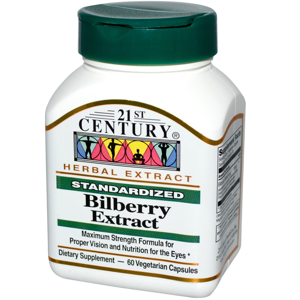Herbal Extract Standardized Maximum Strength Formula for Proper Vision and Nutrition for The Eyes Dietary Supplement 21st Century...For A Healthier Future 100% Vegetarian Formula 21st Century's Bilberry Extract (Vaccinium myrtillus) is standardized to contain 25% Anthocyanosides Flavonoids calculated as Anthocyanidins. Anthocyanosides act as a powerful antioxidant for support and maintenance of normal vision. 21st Century's standardized herbal extracts are thoroughly tested to assure specific levels of the important active ingredients are present for maximum benefit.