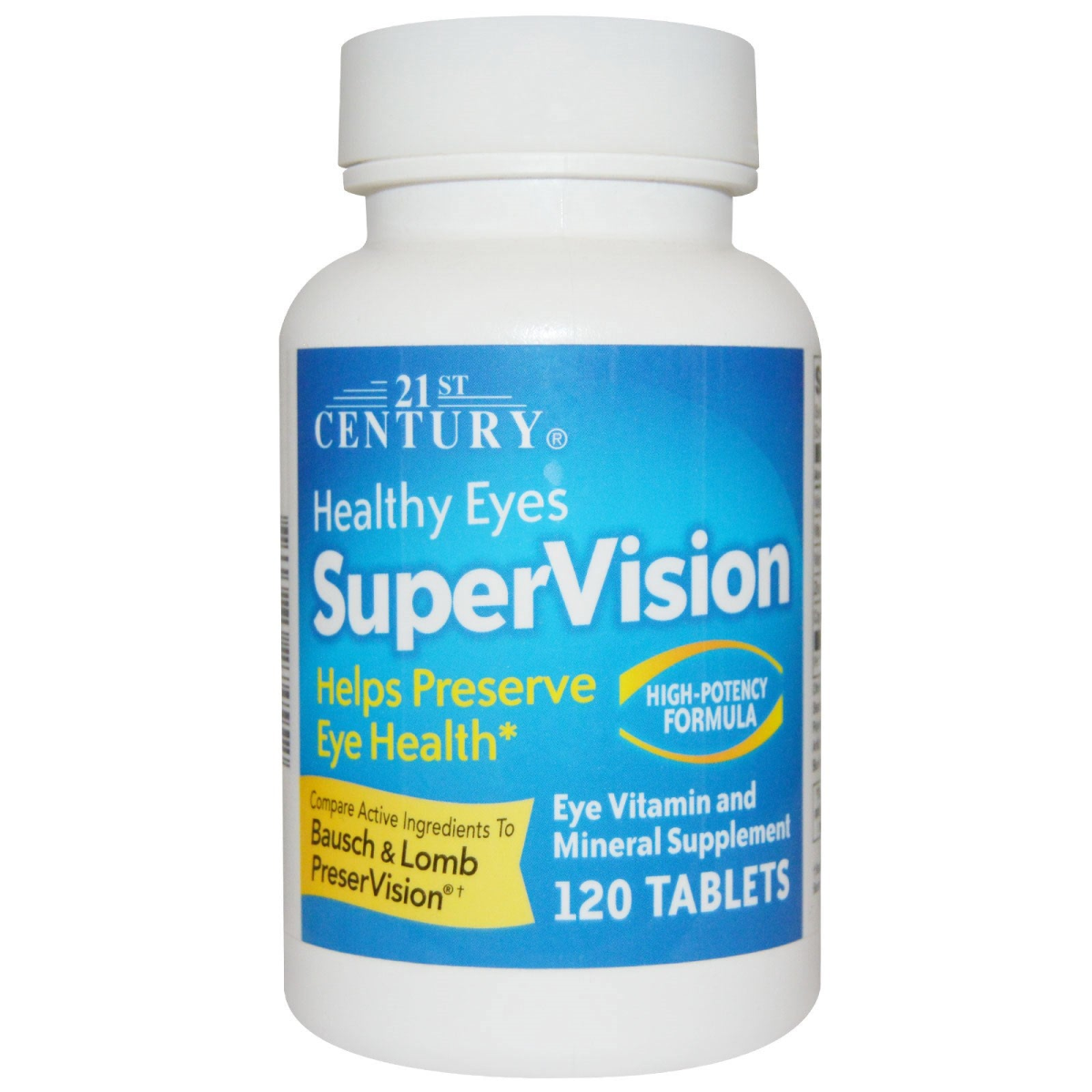 Helps Preserve Eye Health Compare Active Ingredients to Bausch & Lomb PreserVision®†Eye Vitamin and Mineral Supplement Laboratory Tested - Guaranteed Quality 21st Century Healthy Eyes SuperVision high-potency antioxidant formula contains essential vitamins and minerals in amounts to support healthy eye function.