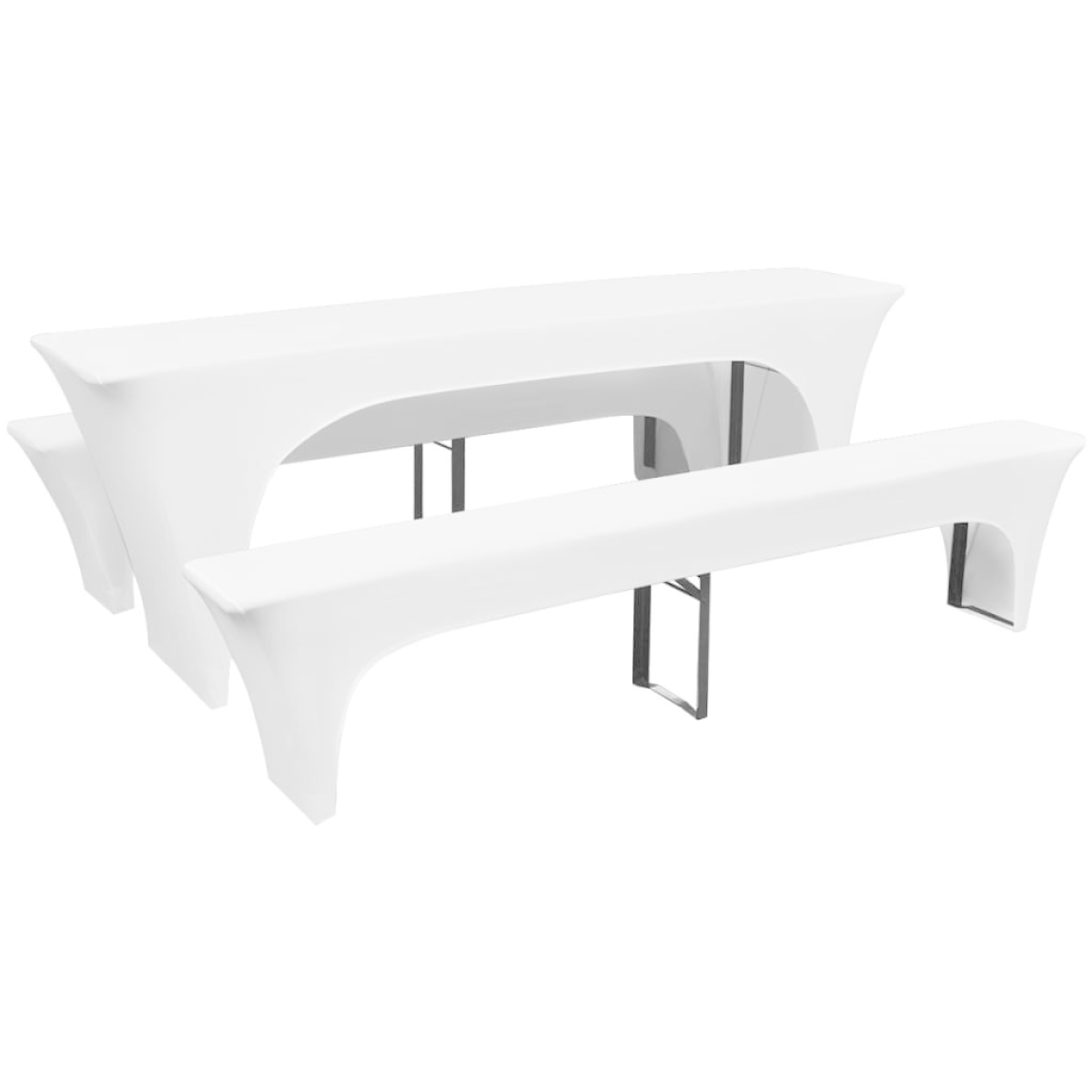3 Slipcovers for Beer Table and Benches Stretch White 220 x 70 x 80 cm