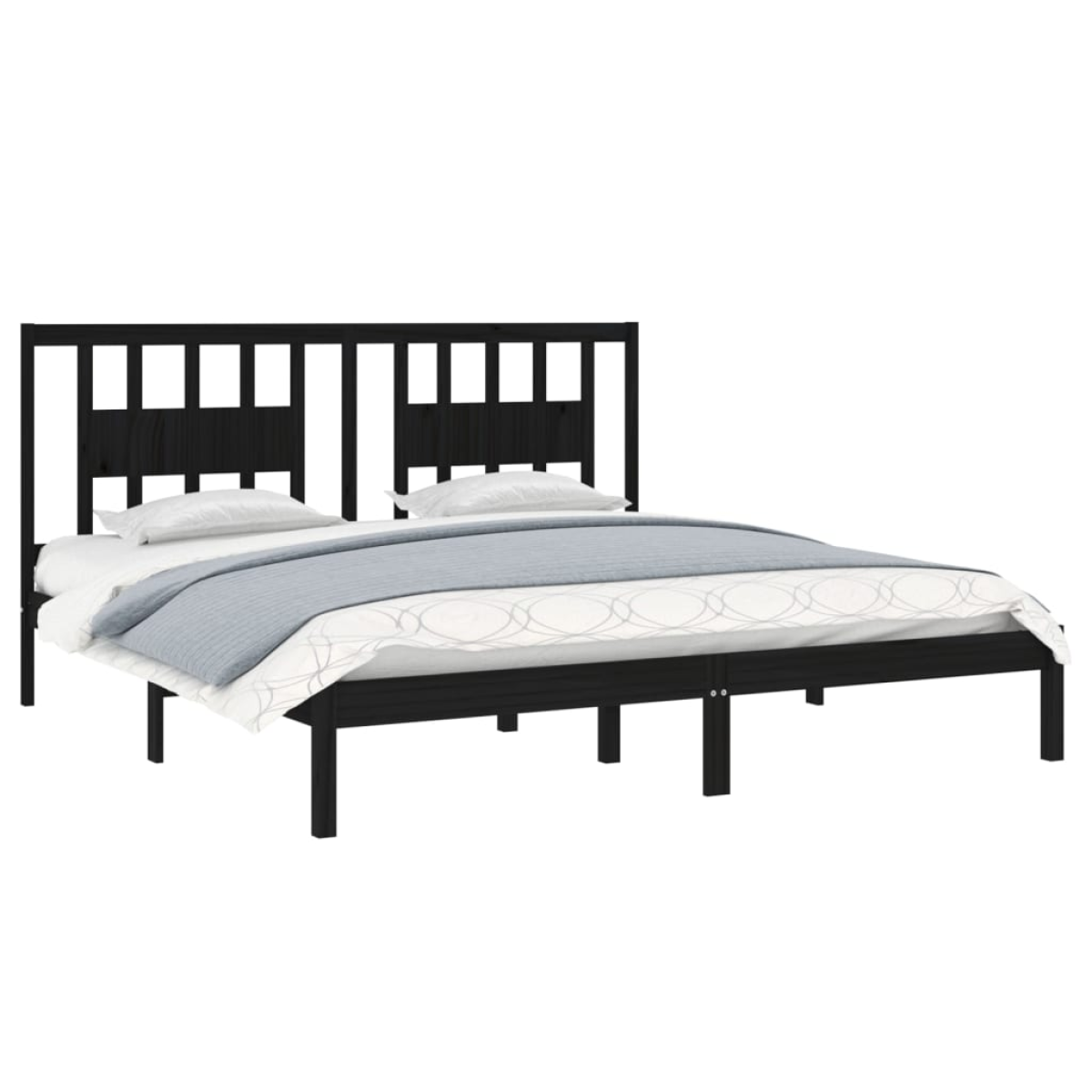 3104087 vidaXL Bed Frame without Mattress Black Solid Wood 200x200 cm (810041+818694)