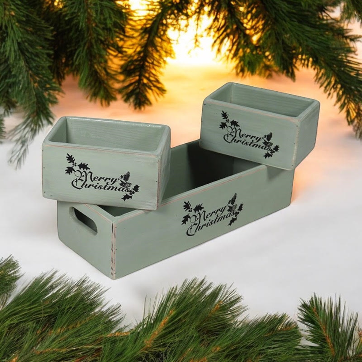 A beautiful set of Christmas boxes for a lovely tradition to be reused every year on the night before Christmas. The wooden box is supplied ready to fill with lots of festive treats and goodies to delight your little one with a special delivery from Santa!, Set of 3Hand Finished