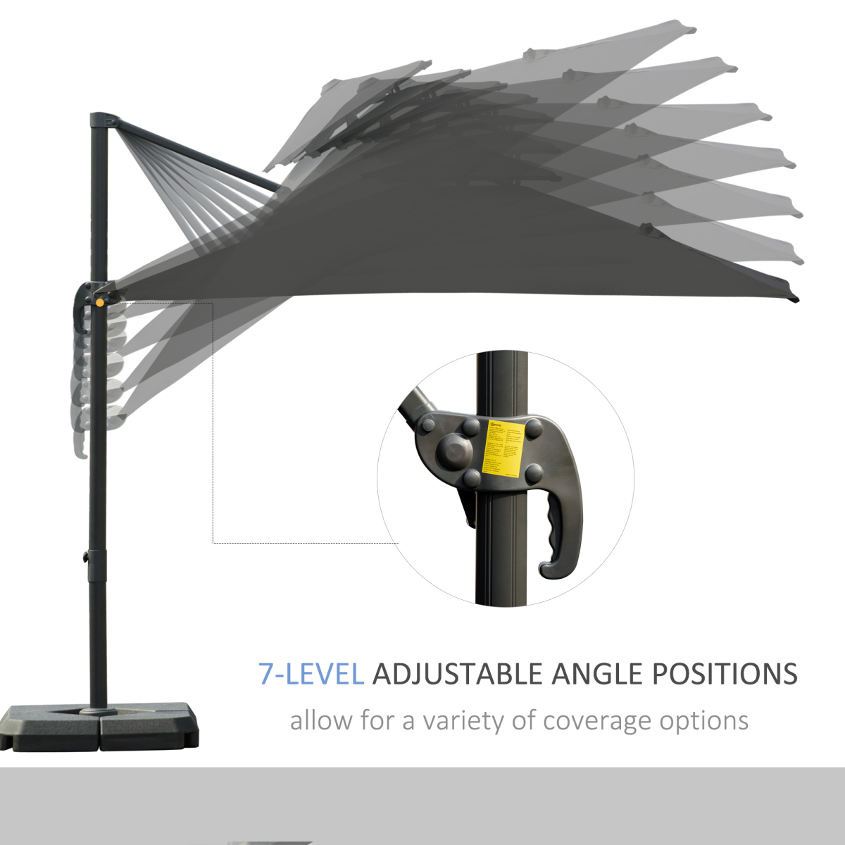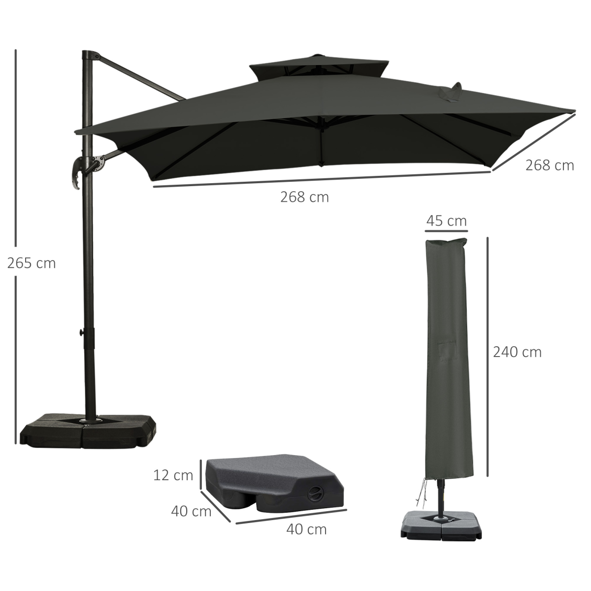 360??Cantilever Parasol Roma Umbrella Base Weights, Cover, Dark Grey Outsunny