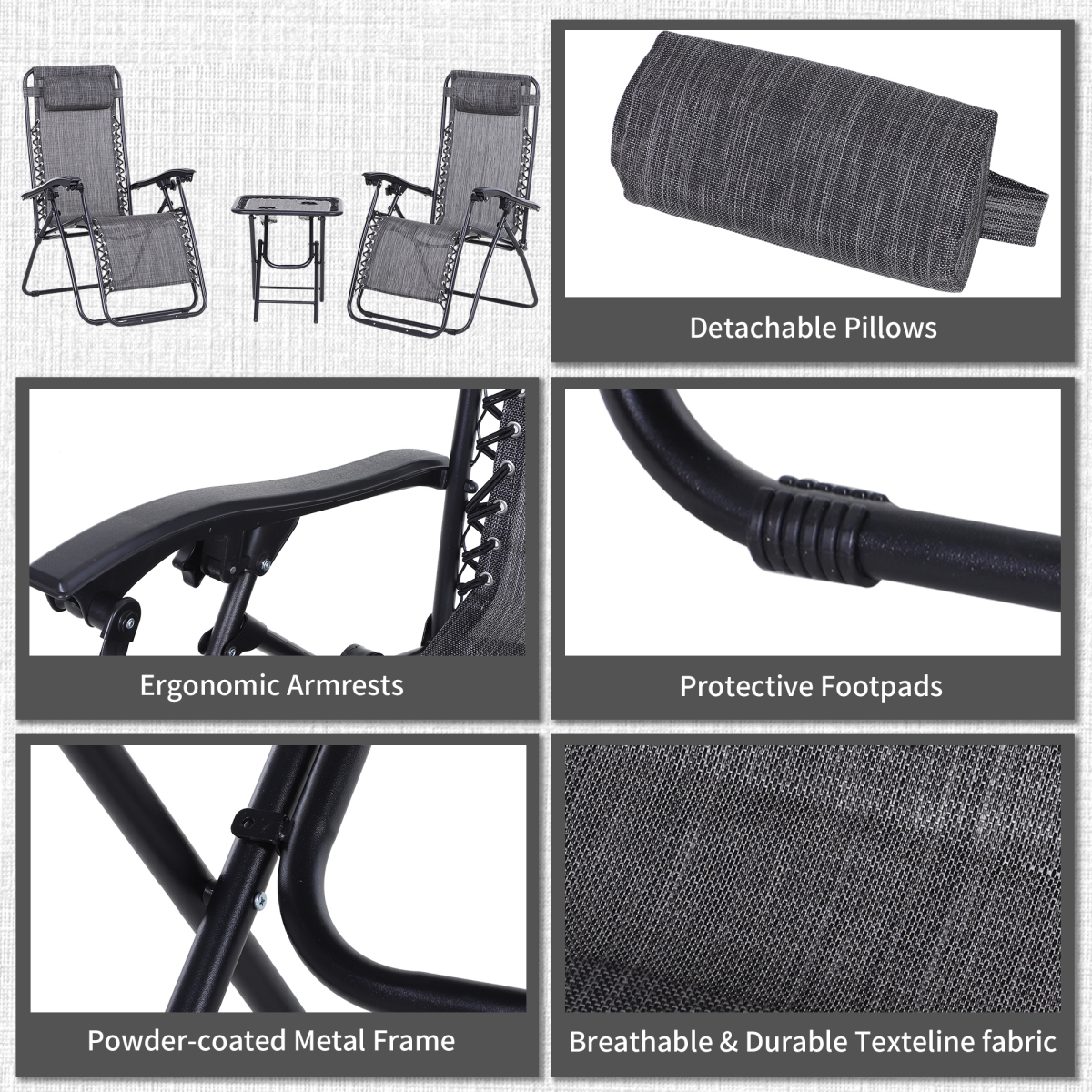 - "3PC Zero Gravity Chairs Sun Lounger Table Set Cup Holders - Light Grey Outsunny"