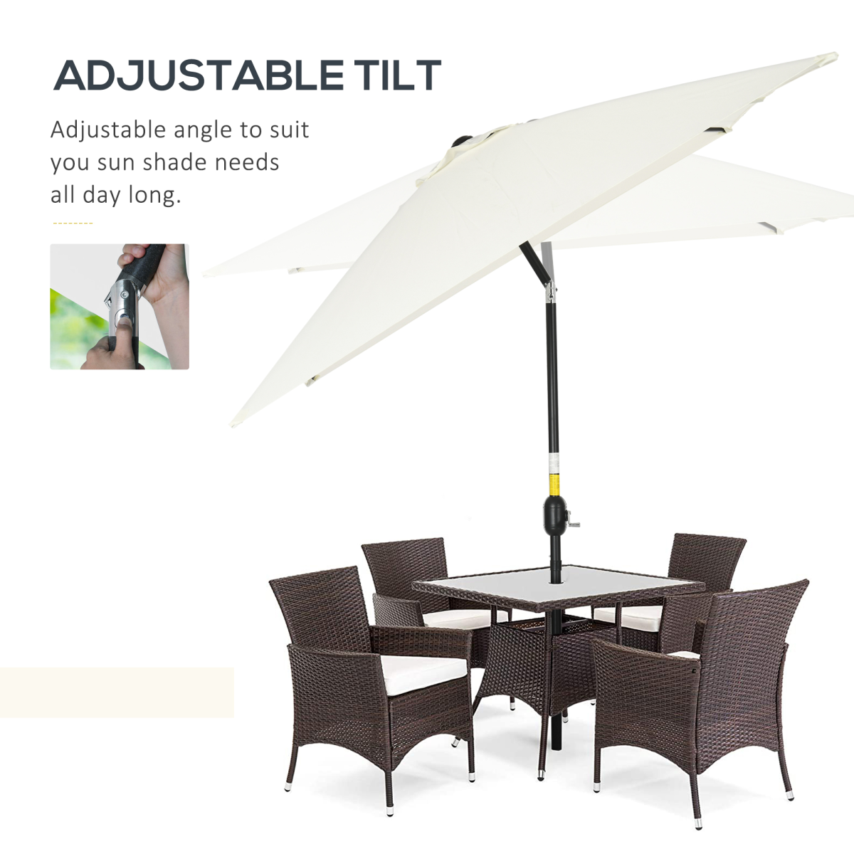 3x2m Patio Parasol Canopy Tilt Crank 6 Ribs Sun Shade Garden White