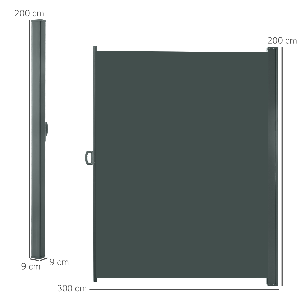 3x2M Retractable Side Awning Screen Fence Patio Privacy Divider Grey