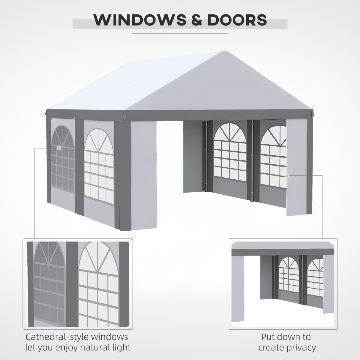 4 x 4m Party Tent, Marquee Gazebo with Sides, Four Windows and Double Doors