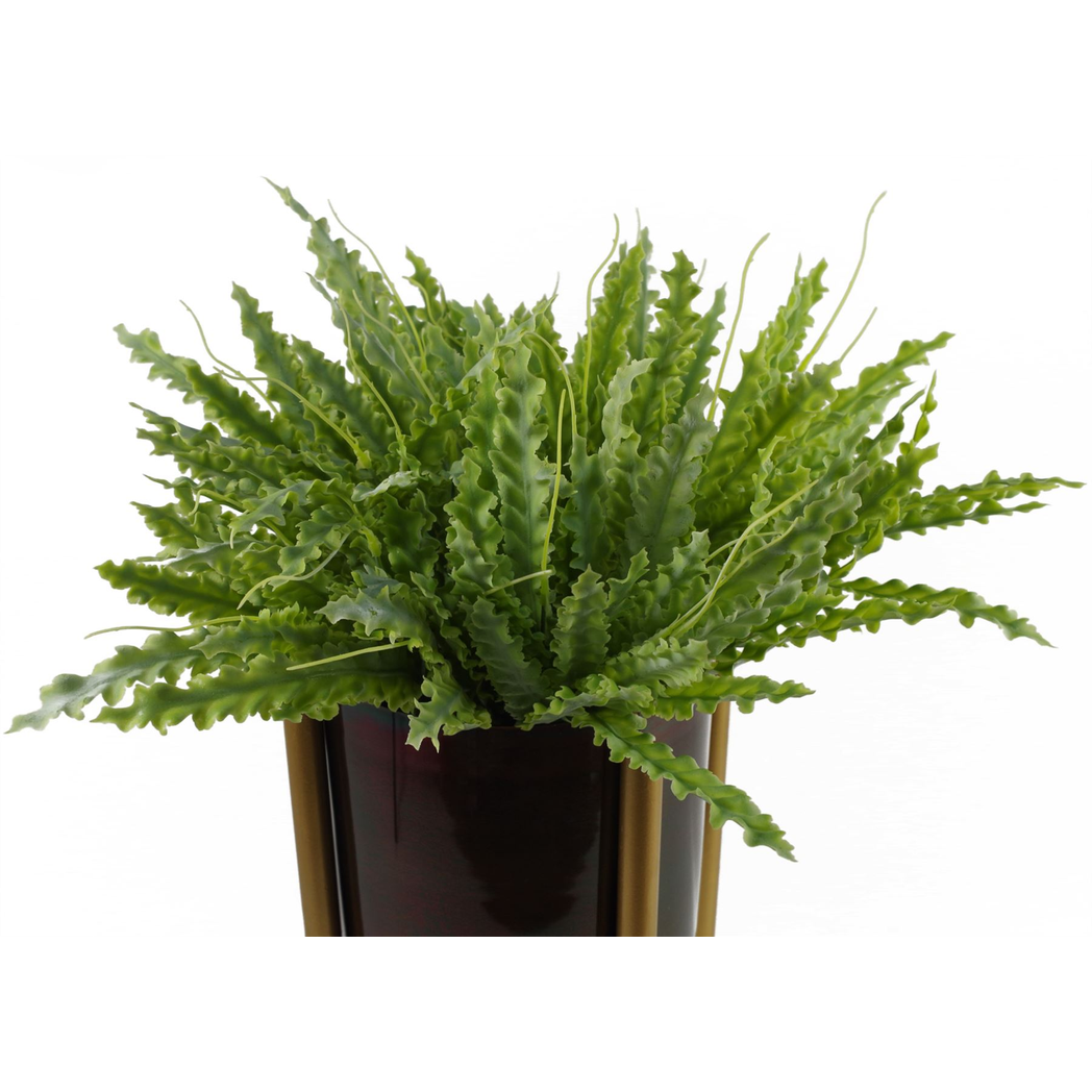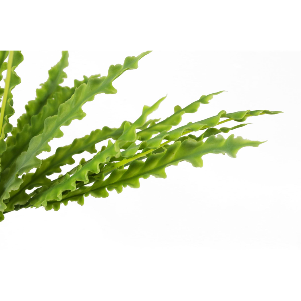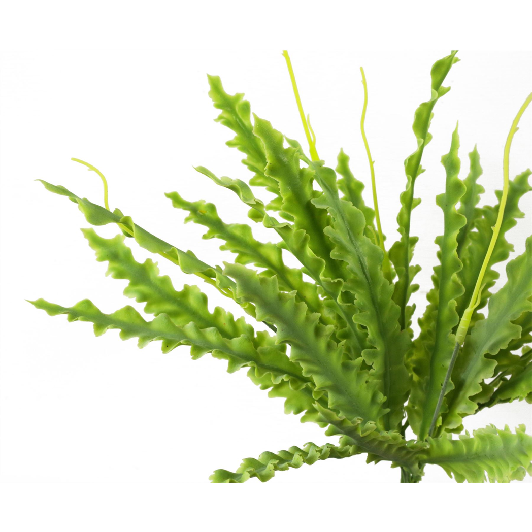 40cm Artificial Crocodile Fern Plant. Artificial plant by Leaf Design UK. 40cm measurement from end to end when flat. Stems are wired and can be shaped to suit your space. This is a bare stem plant supplied unpotted. These can be put inside a planter (see our example images) or combined with other plants for a larger display. No planter is included with this plant. Realistic artificial replica of a fern plant. No maintenance required- ideal for low light areas in your home. These plants also look particularly good when several are grouped together in a large planter.