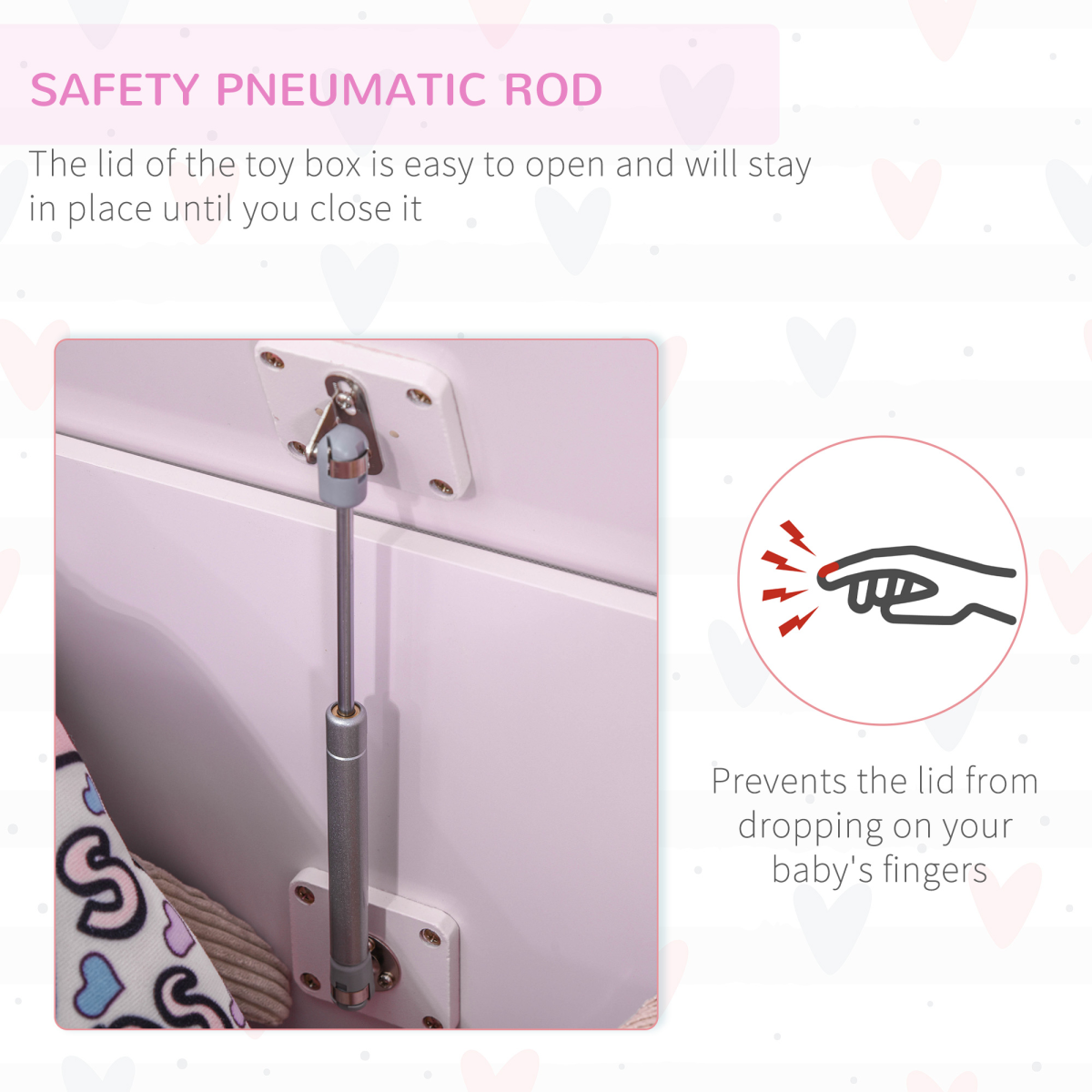 LARGE STORAGE: Plenty of room to store toys, books and shoes etc. Helps keep your child's room tidy.SAFETY FEATURE: Lid is easy to open and will stay in place until closed. Prevents it falling down on fingers.STURDY: MDF structure is solid and durable for reliable everyday use. Smooth surface wipes clean for hygiene.DIMENSIONS: 48H x 60L x 40Wcm. Inner storage: 33.5H x 57.5L x 37.5Wcm. Recommended for ages 3+ years.MAXIMUM LOAD 40KG. EASY TO ASSEMBLE.