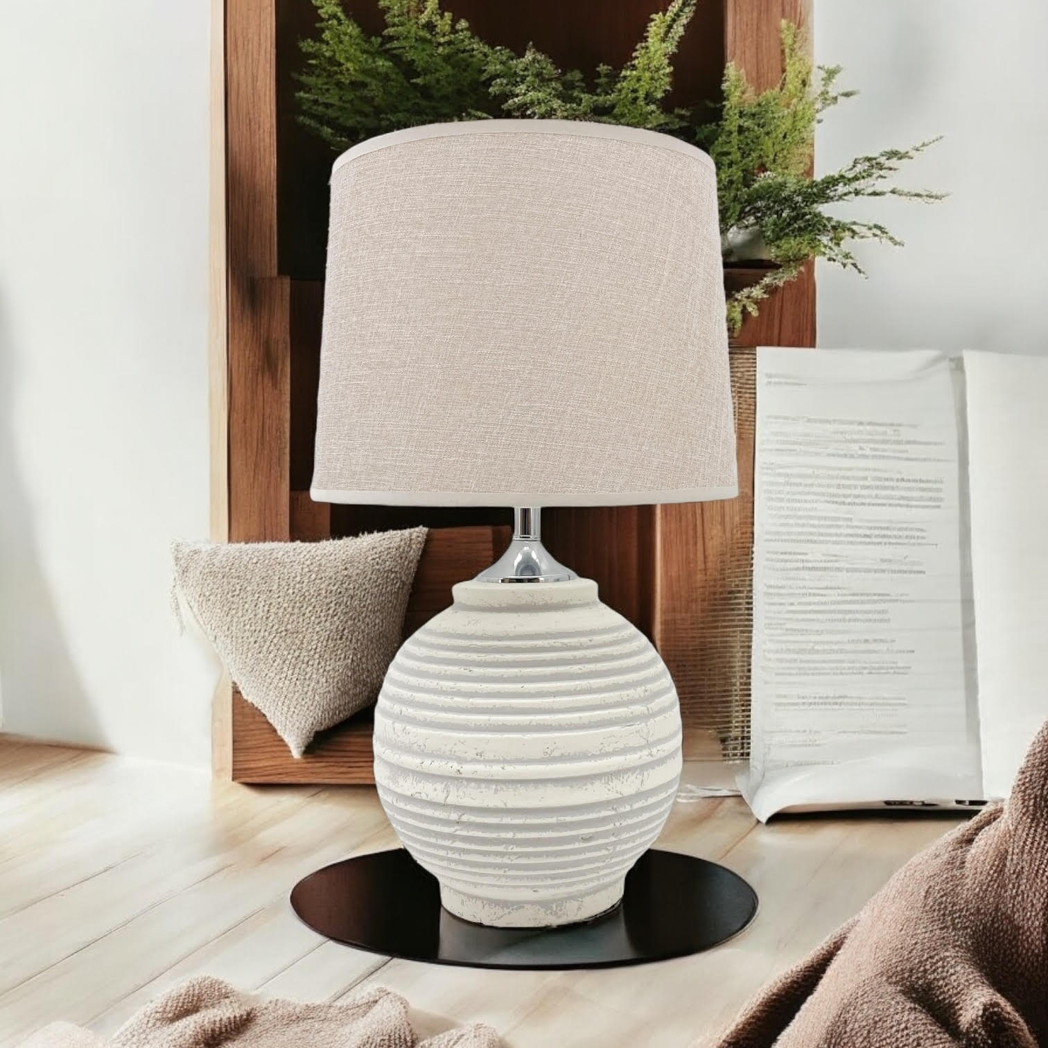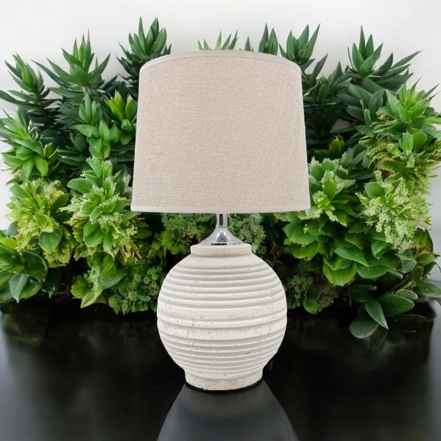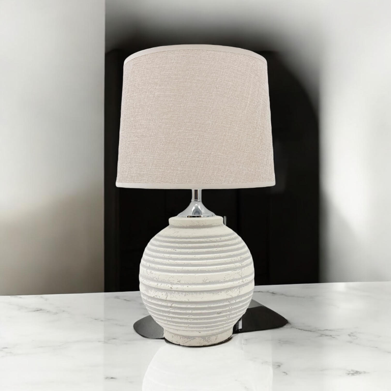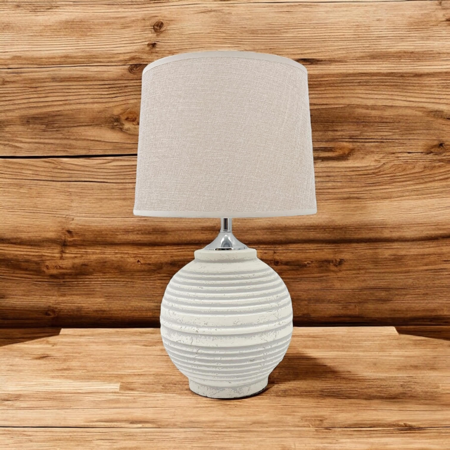 A traditional design table lamp base and shade. The lamp is individually switched by an inline rocker switch and is double insulated to allow for safe use without need of an earth wire. Great for lighting in any setting and ideal in a living room or bedroom., In Line switchHigh Quality Shade