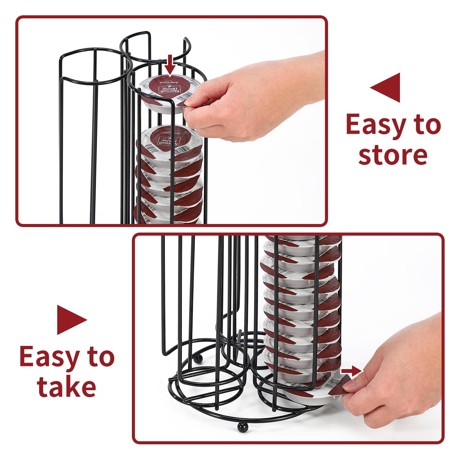 SECURED DESIGN: Non-slip surface provides a safe secure grip to hold the coffee capsules for easy selection and removal. This Pod Holder can easily store up to 48 Coffee Pods. The 3 feet suspended on the base's bottom avoid dents and scratches on your precious tabletop.