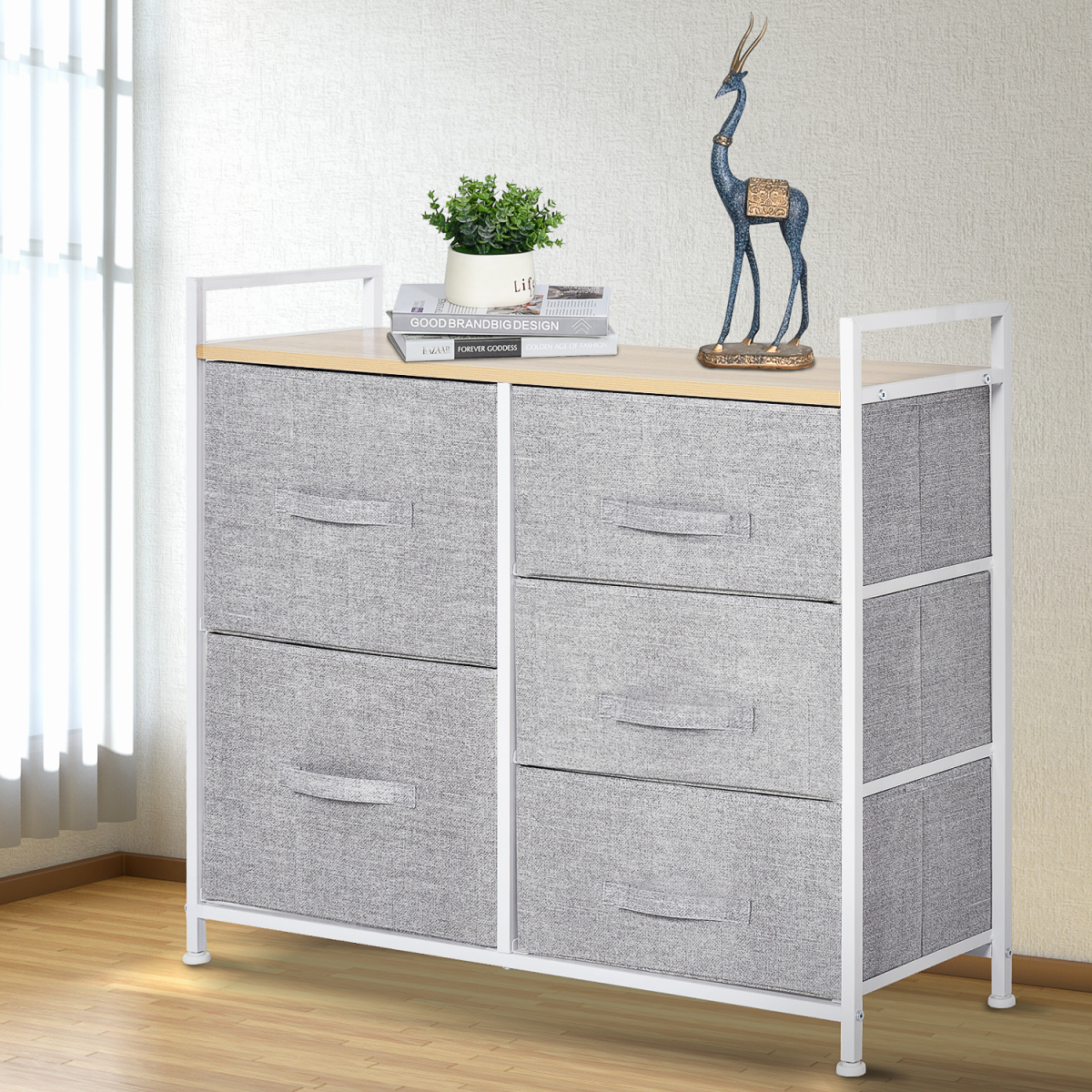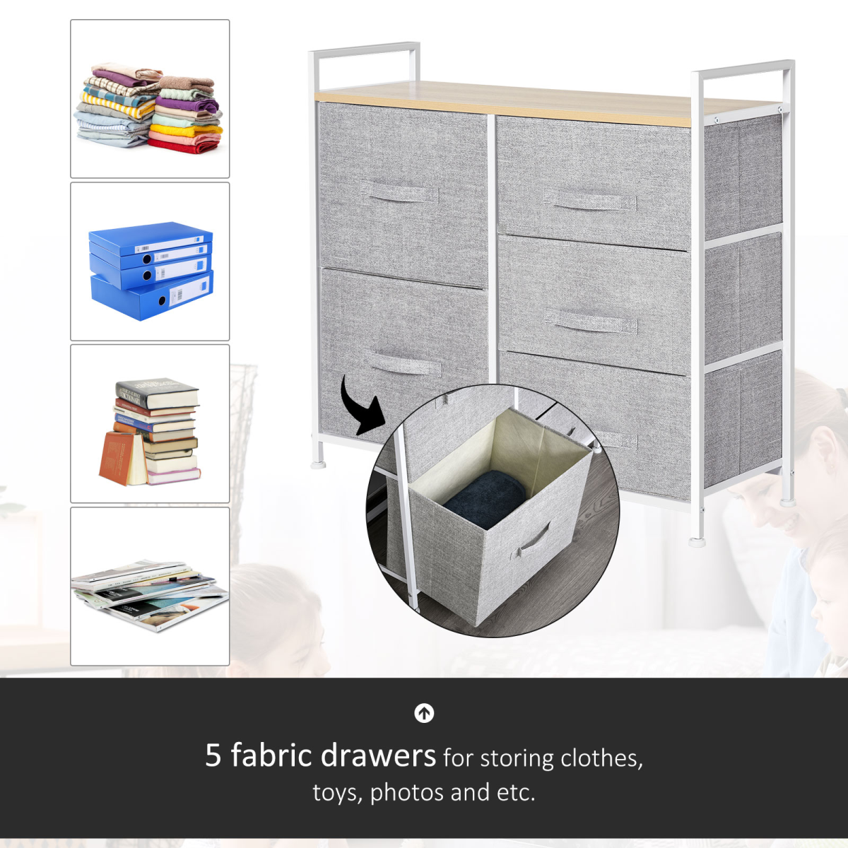 5 Drawer Linen Basket Storage Unit Home Organisation w/ Shelf Handles HOMCOM