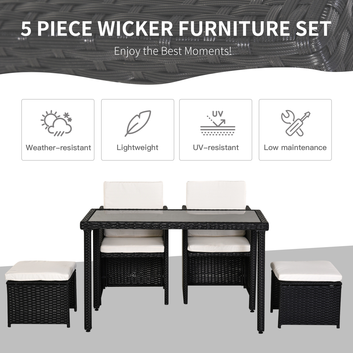 - This Outsunny 5 piece rattan set is an ideal solution for a small garden, patio or conservatory.