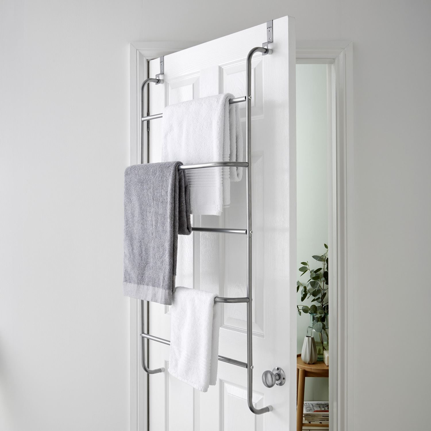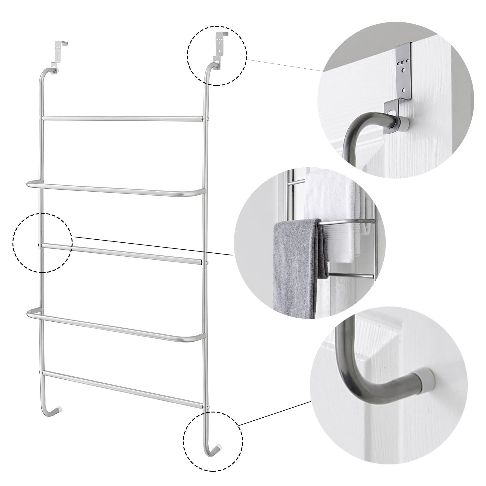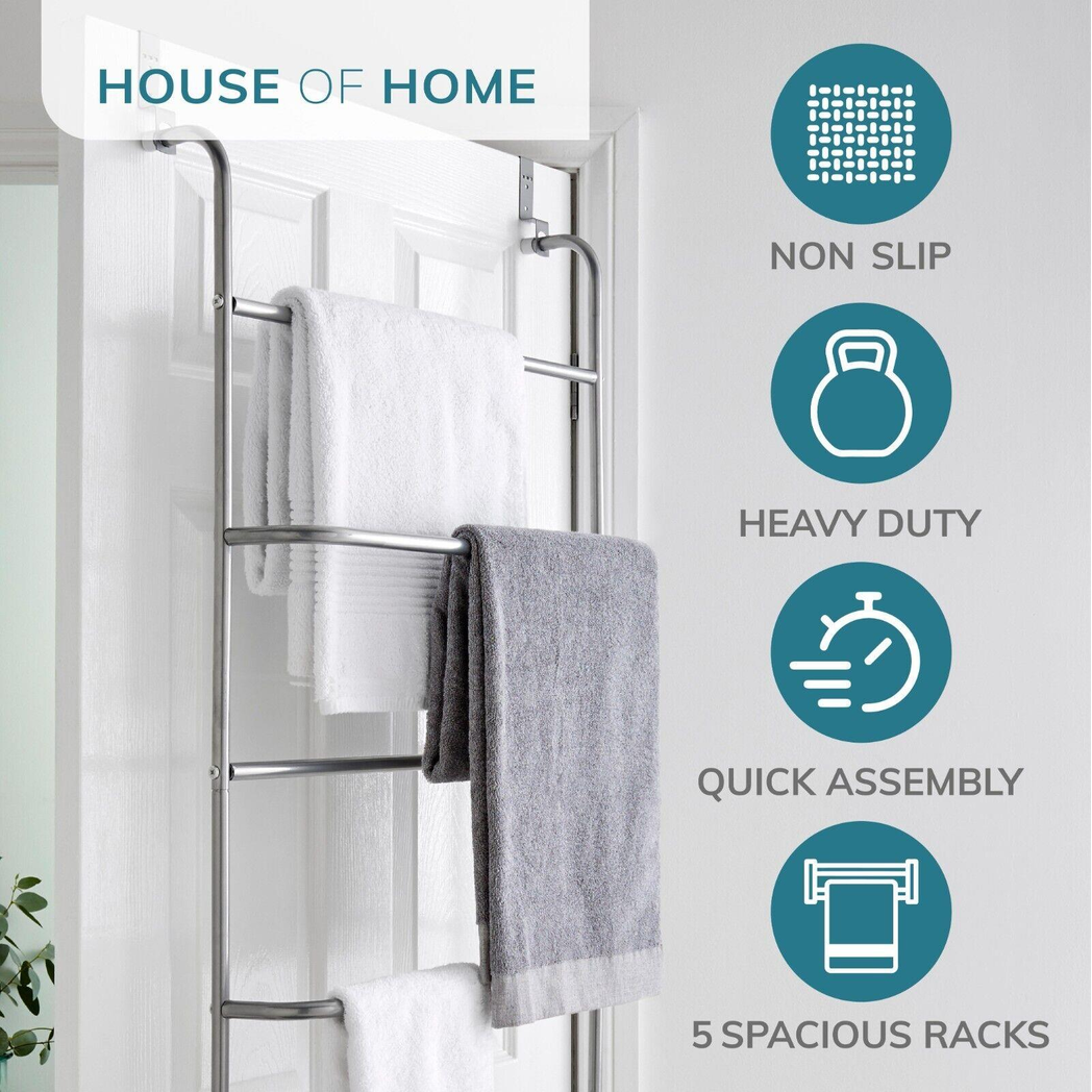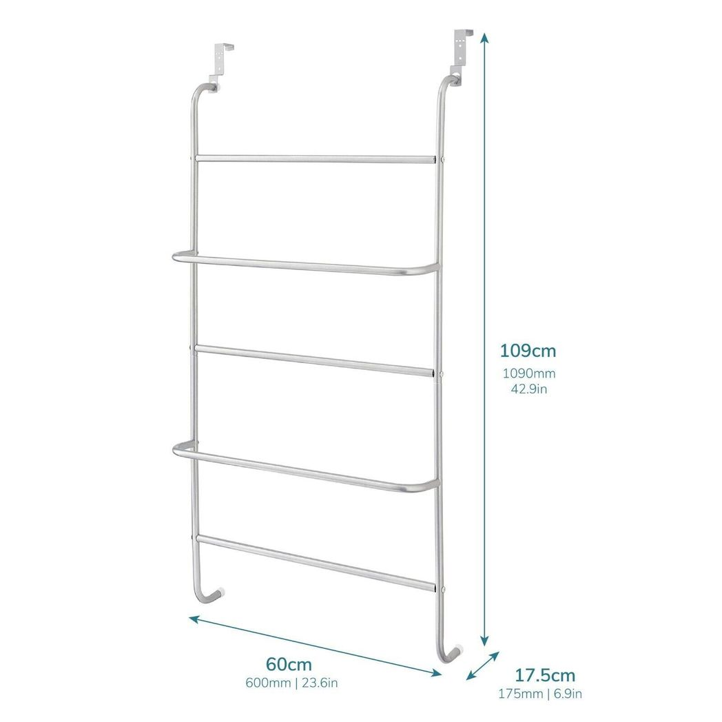 This metal clothes rack creates a practical storage space on your bathroom or bedroom door. Perfect for bath towels, hand towels or clothing.