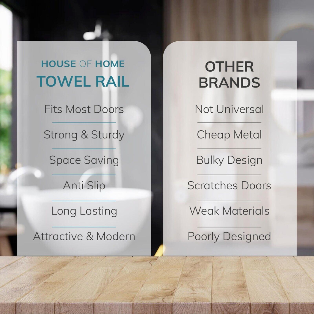 Simple to assemble, the over the door towel rail is simply hung up by the hooks above each door with thickness up to 4 cm. This allows you to flexibly use them throughout the household.