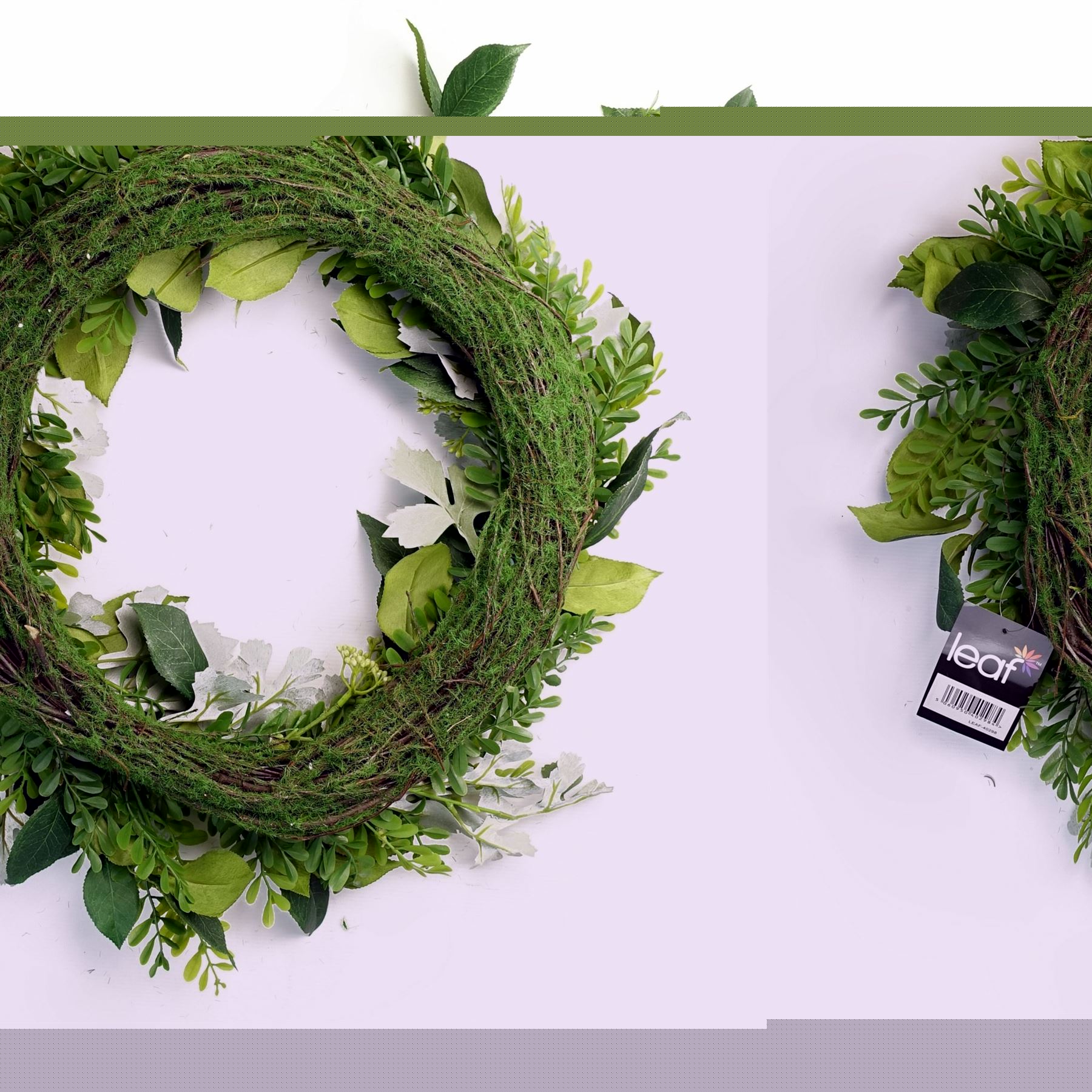 Genuine Leaf product. 50cm Large Artificial Fern Wreath. Natural woven base. Size including foliage when arranged is 50cm diameter. Natural woven base measures 40cm. Ideal for all door sizes. We have matching garlands available if you need a set. Part of our range of realistic plants and trees.