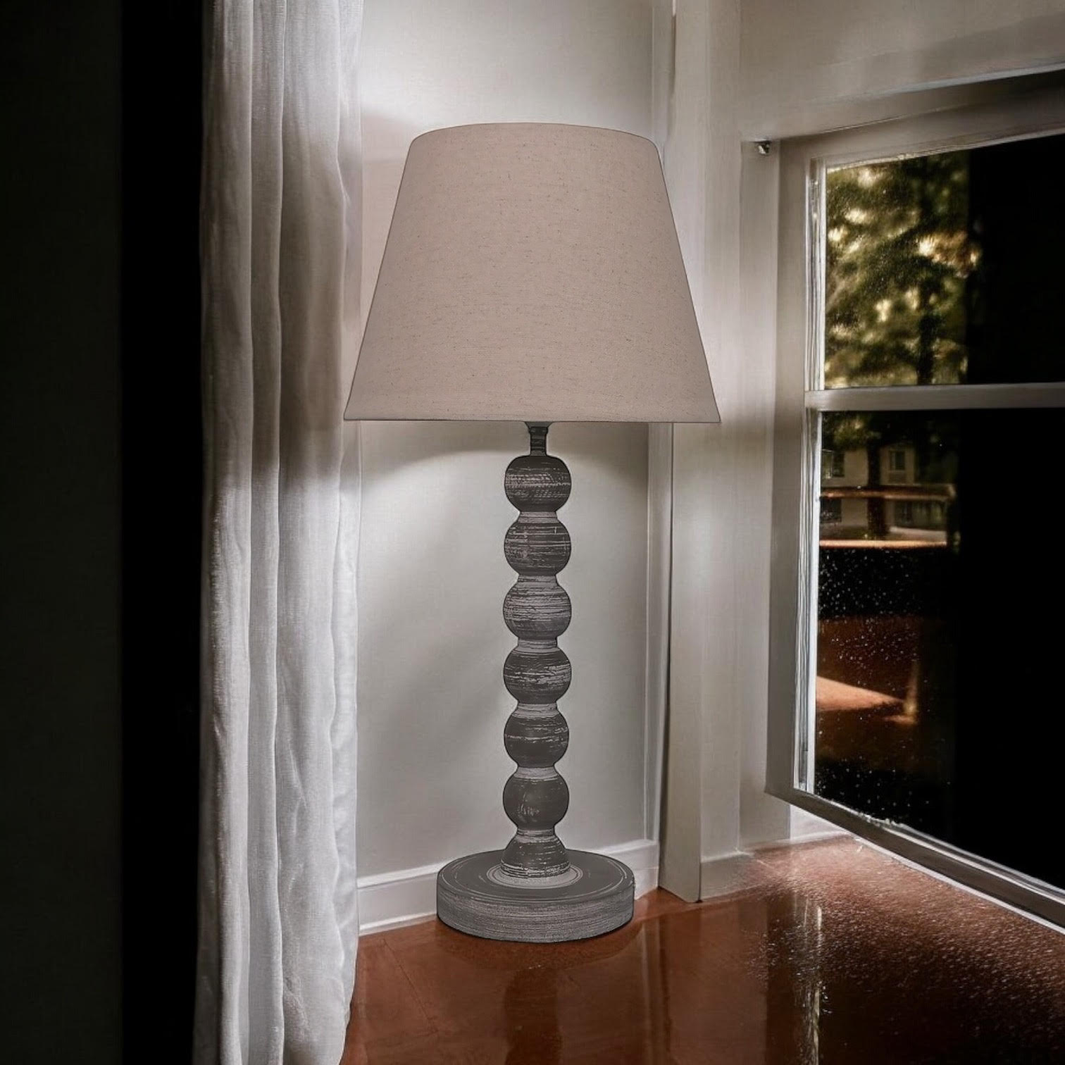 A traditional design table lamp base and shade. The lamp is individually switched by an inline rocker switch and is double insulated to allow for safe use without need of an earth wire. Great for lighting in any setting and ideal in a living room or bedroom., In Line switchLinen shade