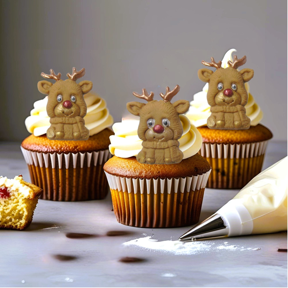 Enhance your Christmas baking with our 6 handmade edible reindeer cupcake toppers. They will add a festive unique touch to any baked dessert