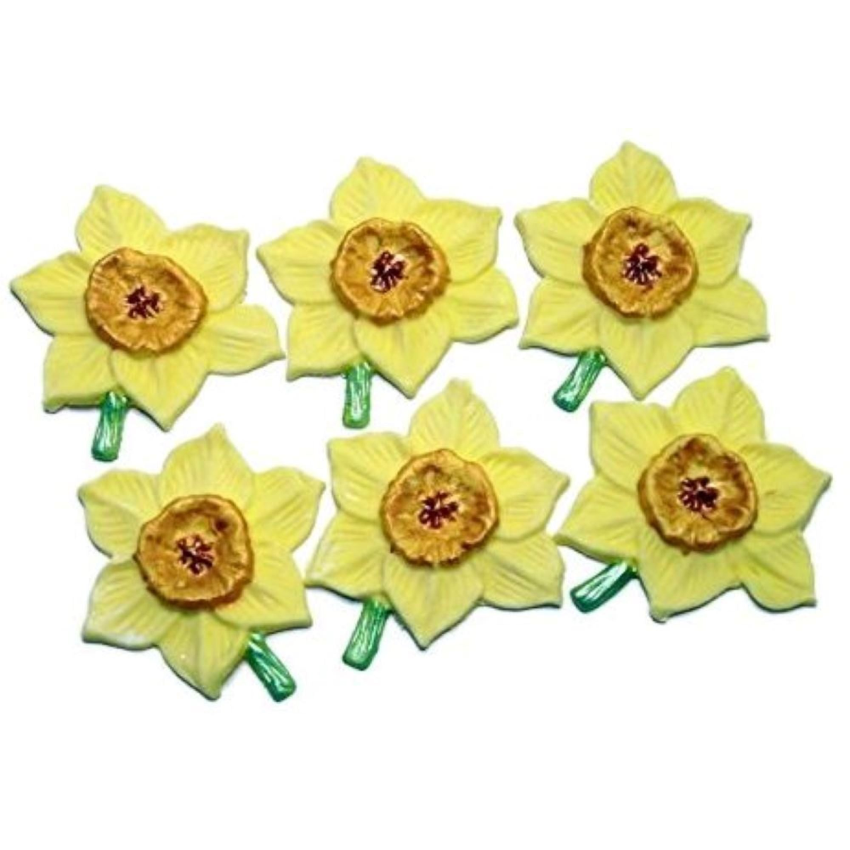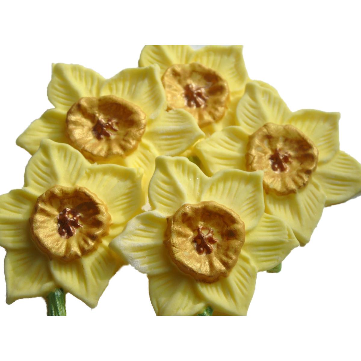 6 Handmade Edible Daffodil Flower Decorations - Great for your home made bakes, Brighten up your cakes & cupcakes with ease for easter and celebration bakes