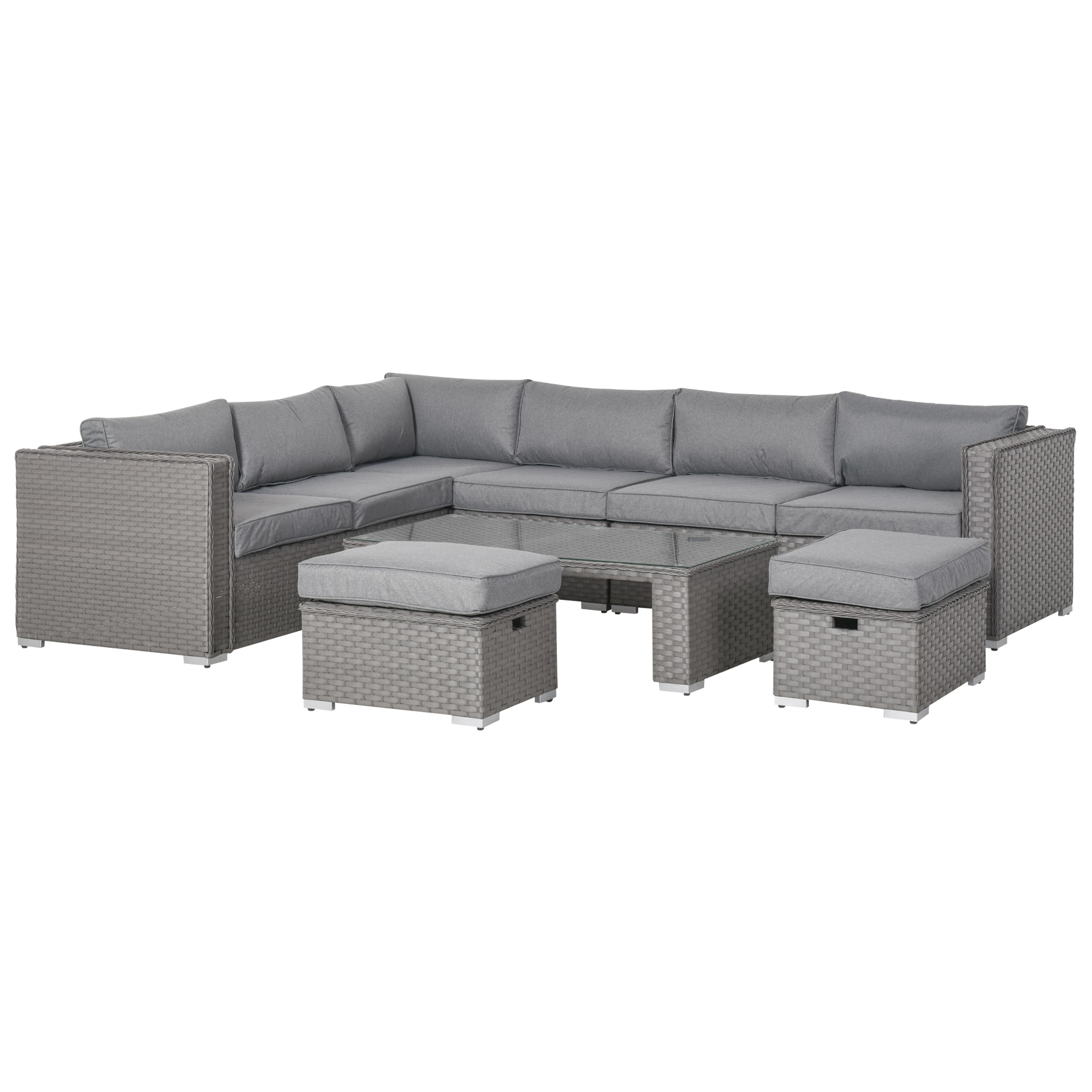 Brighten up your outdoor area with this luxury 6 PCs rattan furniture set from Outsunny. This set included 3 double corner sofa, 1 coffee table, and 2 footstools. Made of lightweight but durbale aluminum frame, uv and fade resistant weather-proof PE rattan are strong enough to withstand all weather conditions. Decorative and functional set help making the outdoor area as inviting as the indoor. Easy to clean and maintain this set will offer the outdoor lounging experience for years.