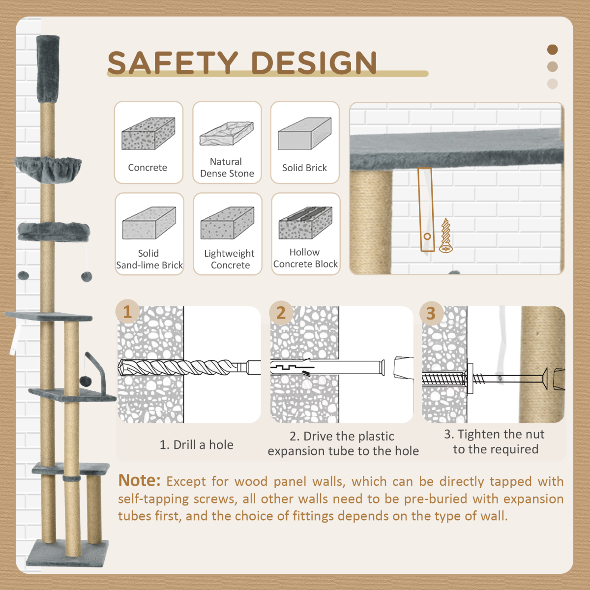 - Note: This cat tower needs to be attached to the ceiling for added safety and is designed for ceilings under 250cm in height.