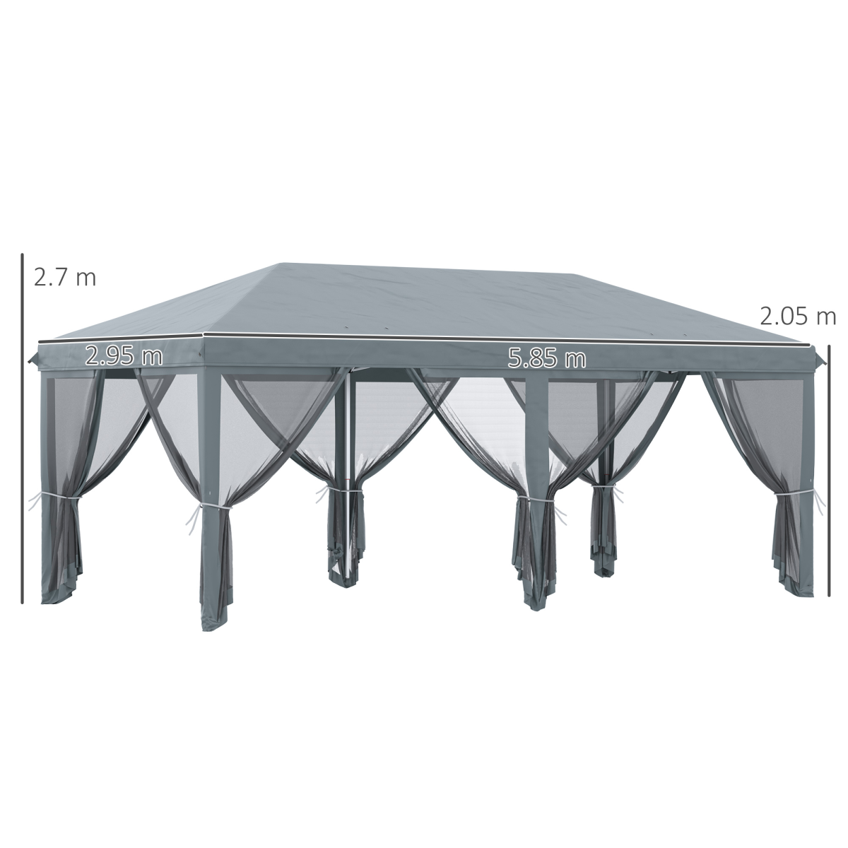 6 x 3m Pop Up Party Tent Canopy with 6 Removable Sidewalls Grey