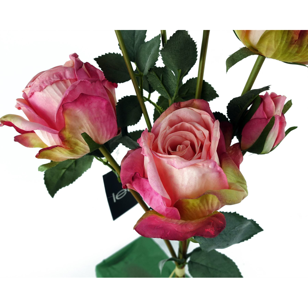 60cm Pink Rose Artificial Flowers. Our artificial flowers have high attention to detail - flowers you have to check twice to believe they actually artificial!. Each spray bundle is bound with hessian and includes four flowers and three buds. These look particularly impressive when combined as a bouquet with our other artificial flowers.. These flowers come as bare stems ready to create your own arrangements. Any planters or vases shown are for illustration only and are not included. Each spray bundle is bound with hessian and includes four flowers and three buds. These can easily be combined with our other flowers to make an arrangement.