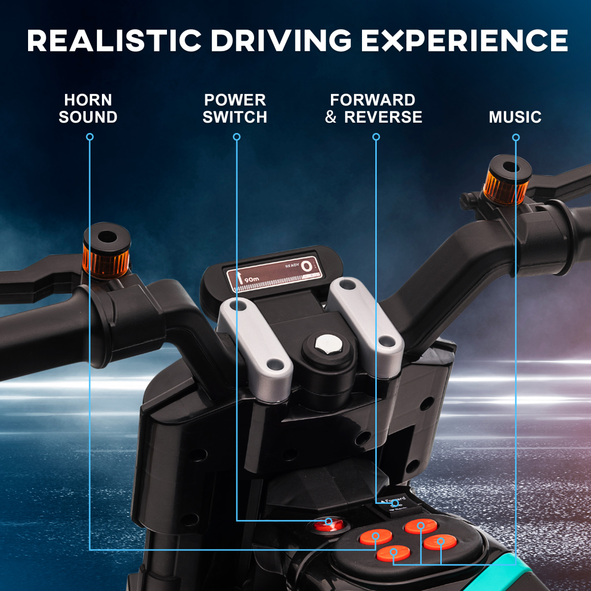 6V Kids Electric Motorbike w/ Training Wheels, for 3-5 Years - Black