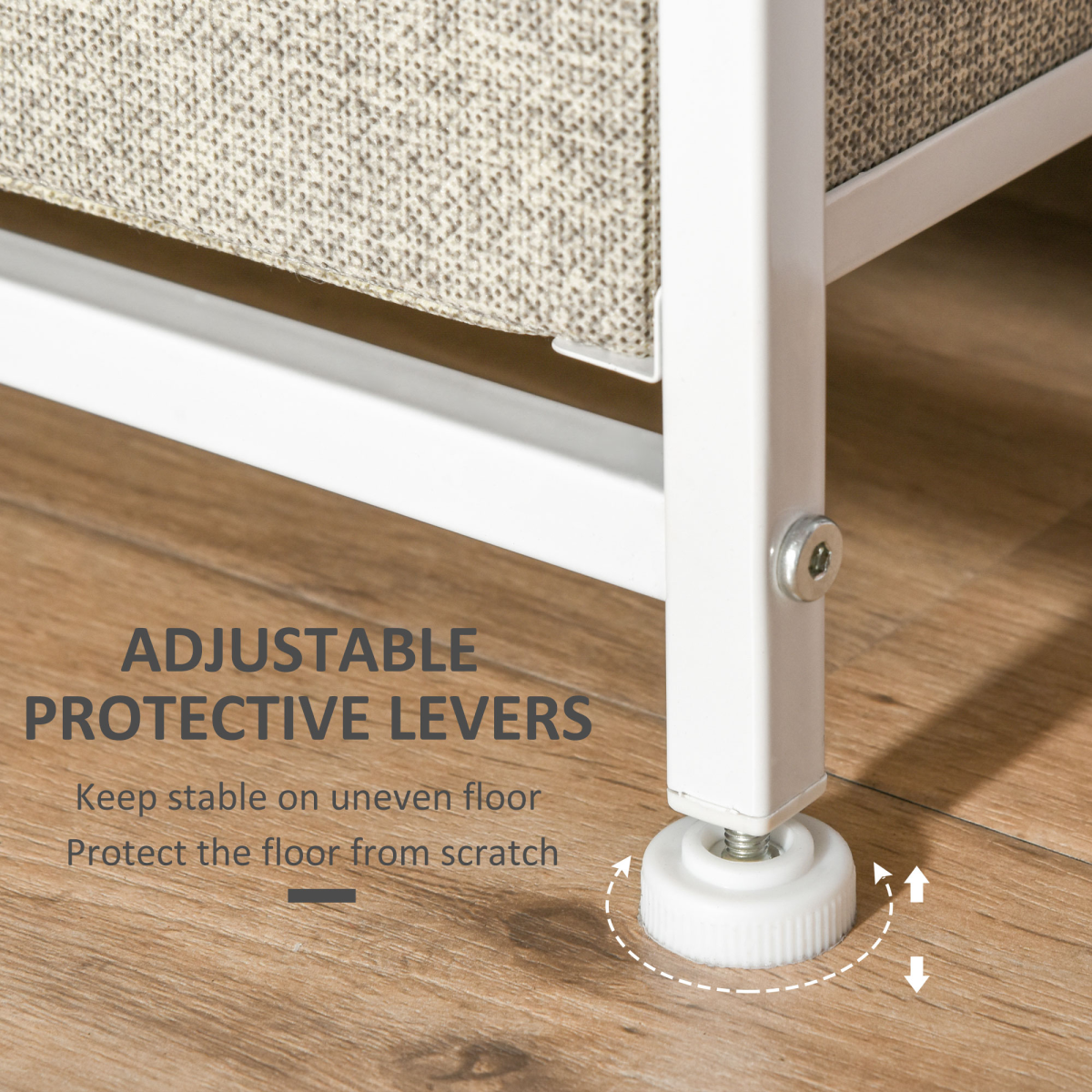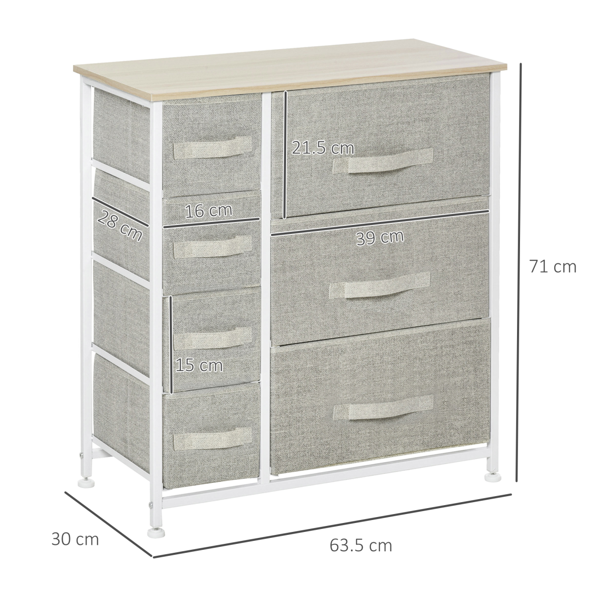7 Linen Drawers Cabinet Organizer Adjustable Feet White, Oak and Light Grey