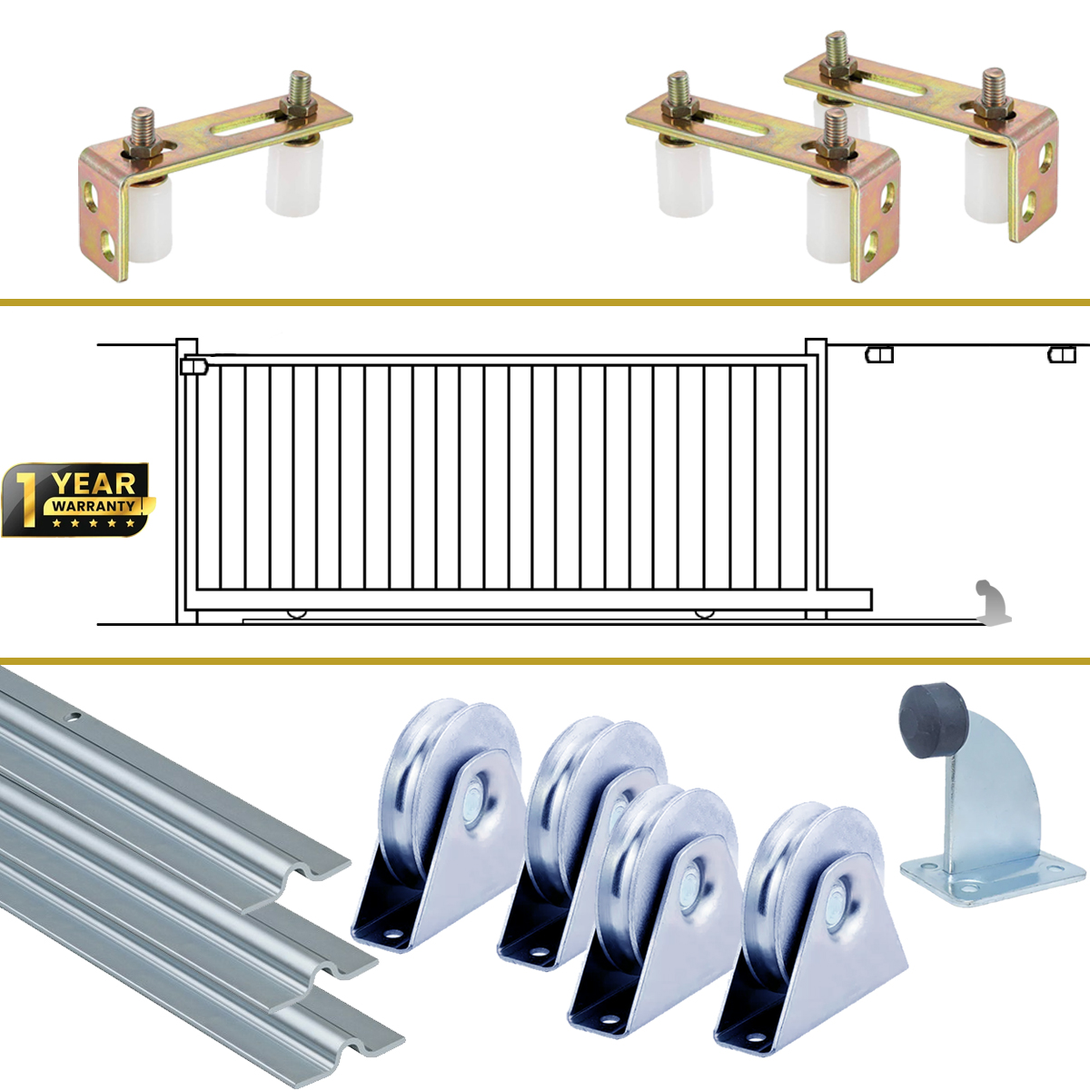 SLIDING DOOR KIT - Gate Tracks, Rollers, Castors, Guide Brackets, and Stopper