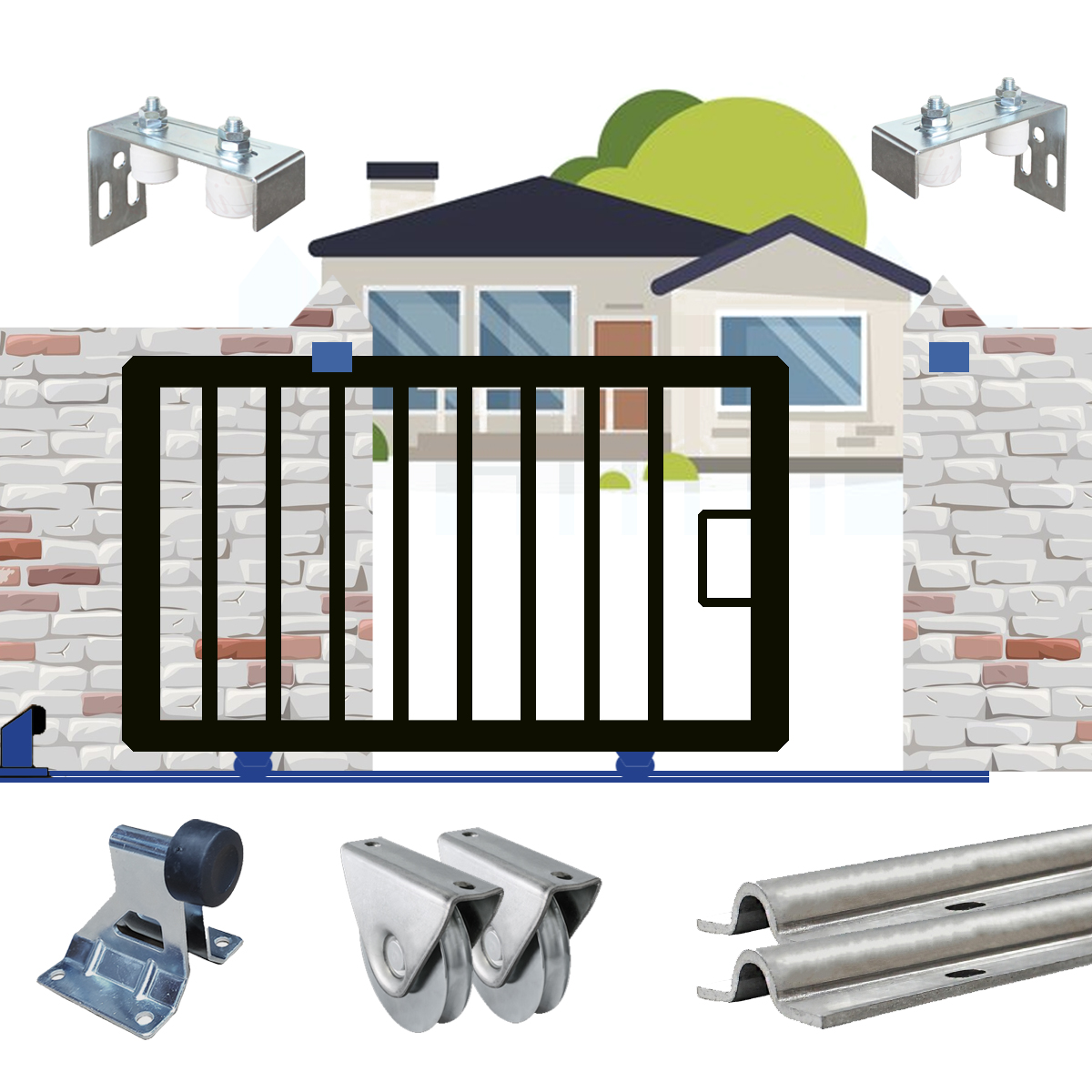 Roller Gate Kit TRACKS, WHEELS, STOP, GUIDES, ROLLERS, Load up to 300KG