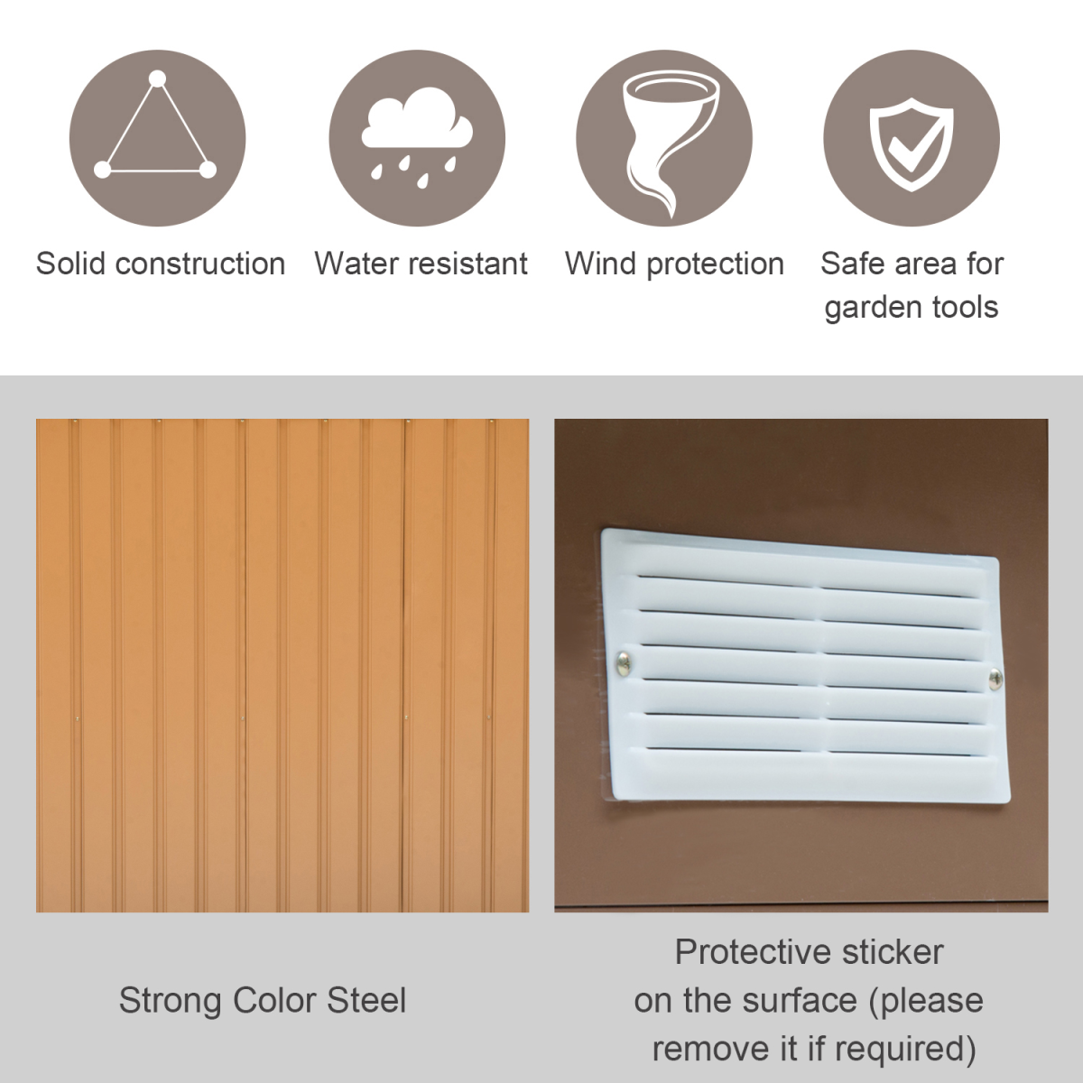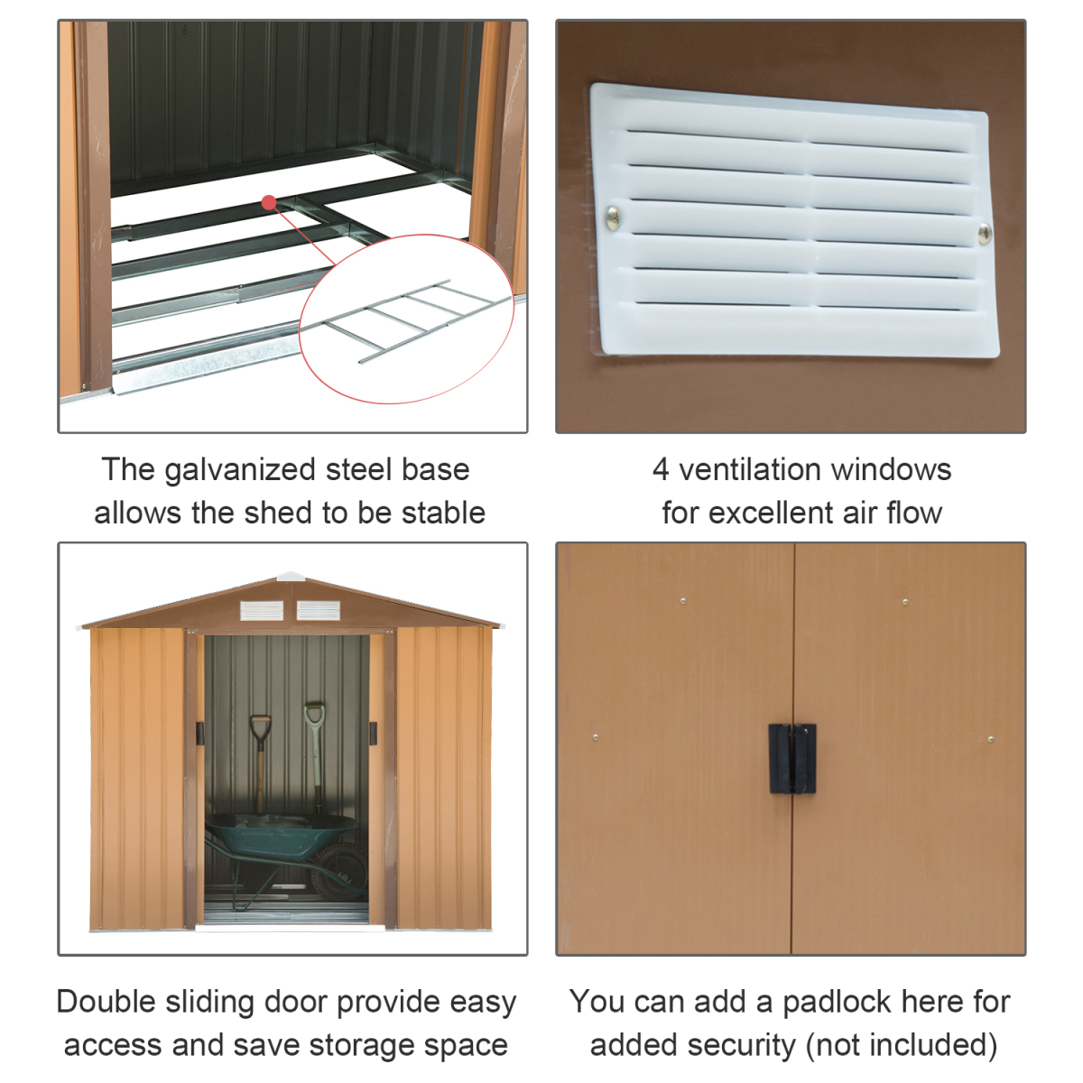 9x6 ft Metal Shed Khaki Storage Large Yard Store Door Container
