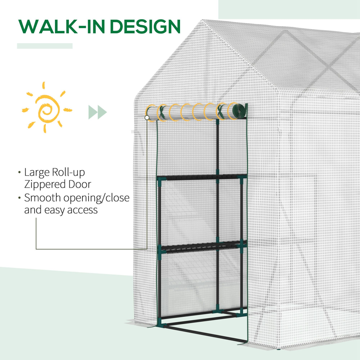 Greenhouse for Outdoor, Gardening 2 Tier Shelf, PE Cover, 143x143x195cm, Green