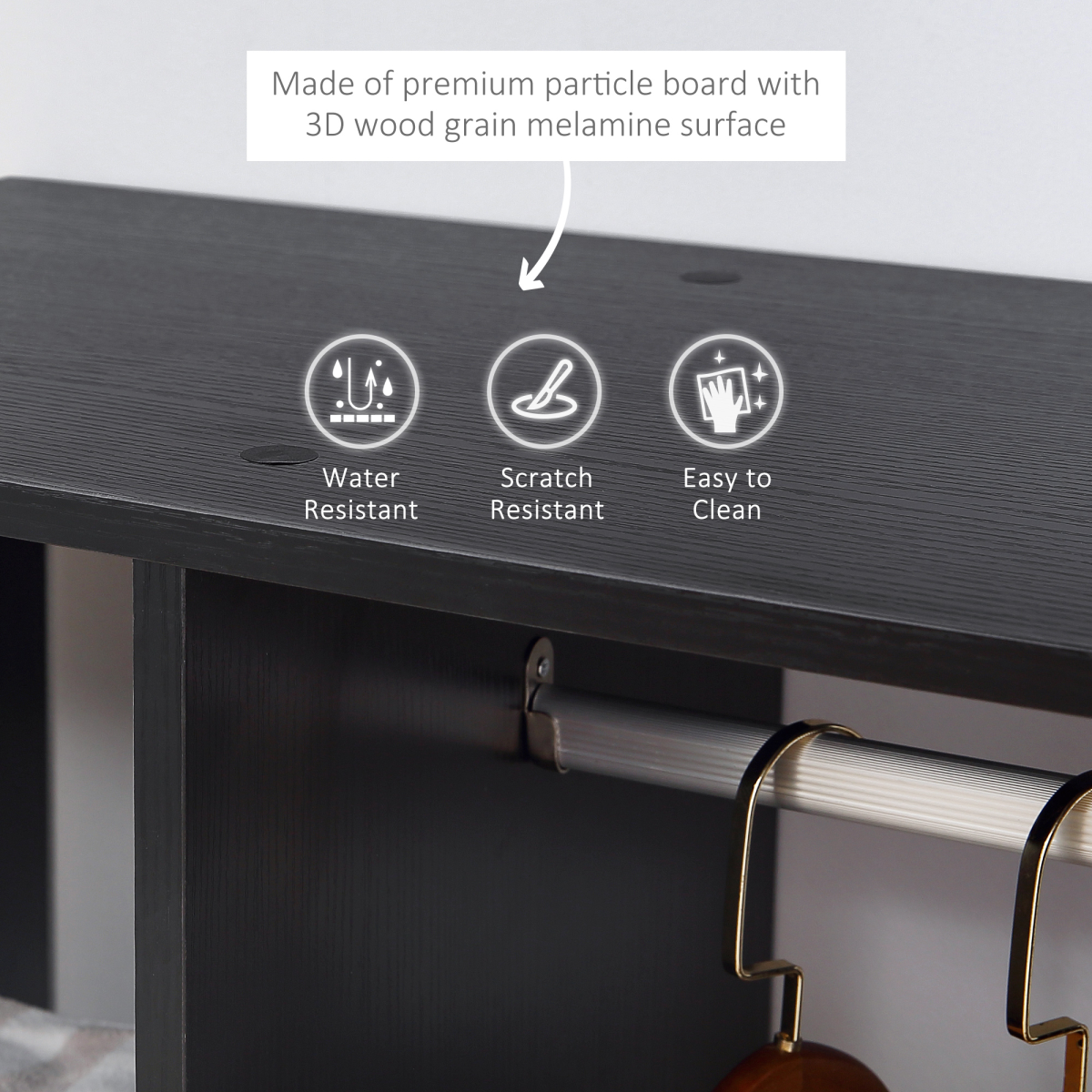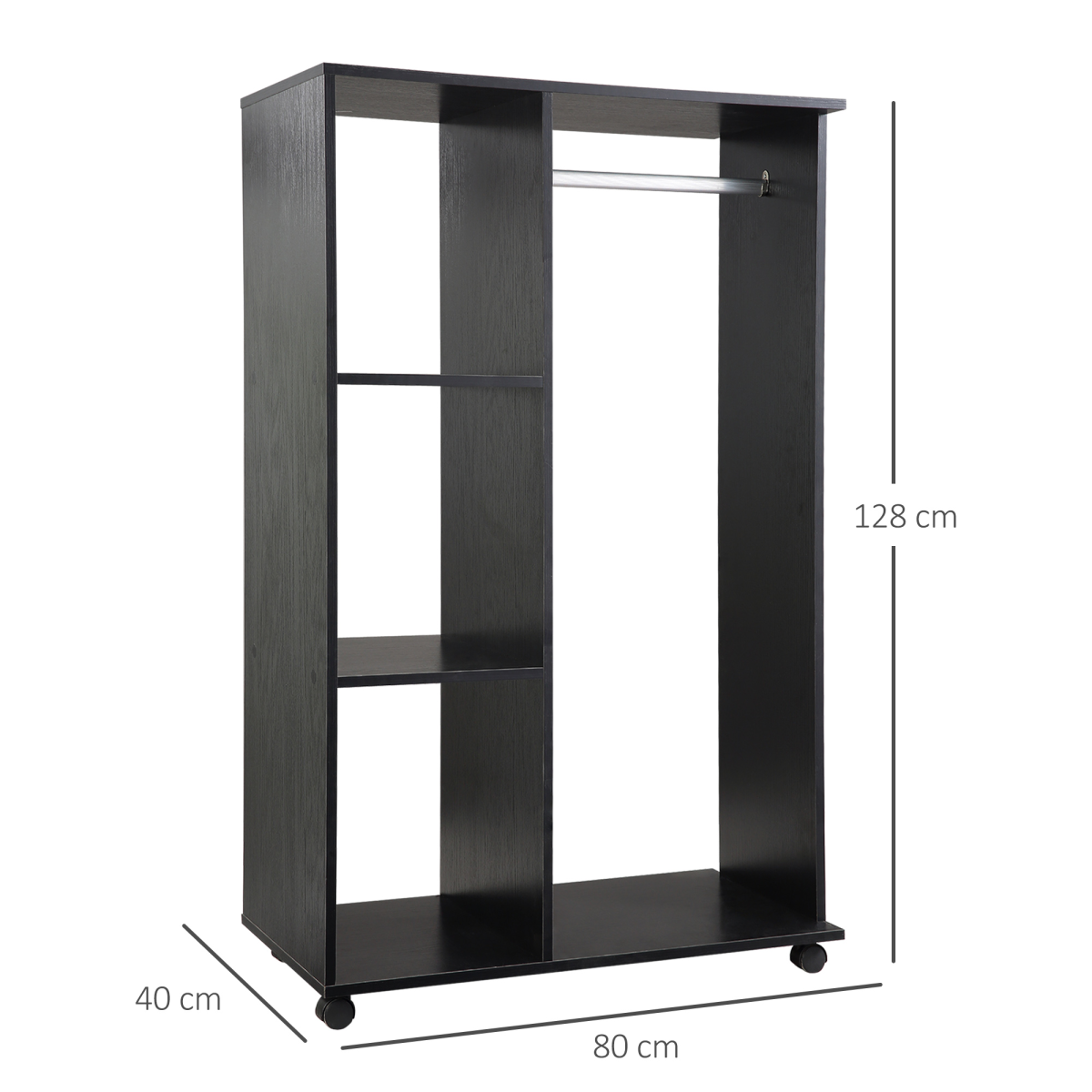 Rolling Open Wardrobe Hanging Rail Storage Shelves for Clothes, Black