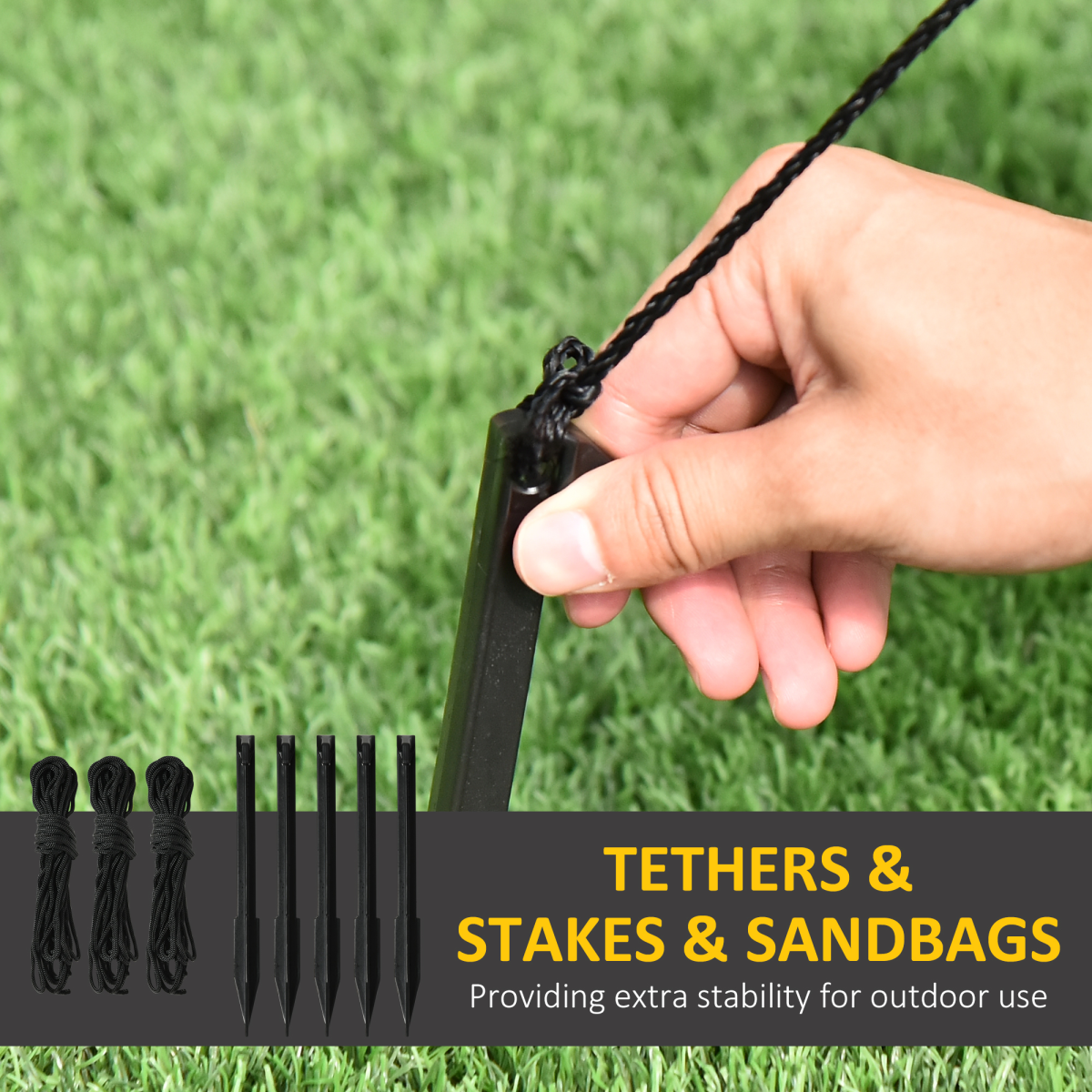 - HARDWARE/ACCESSORIES: Includes 3m long lead wire, internal fan, 1 sandbag, 3 tether ropes, and 5 ground stakes to help secure your display.