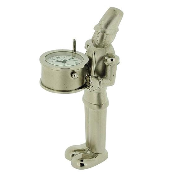 Miniature Clock Silver plated Toy Soldier with Clock Drum Solid Brass IMP1041- CLEARANCE NEEDS RE-BATTERY