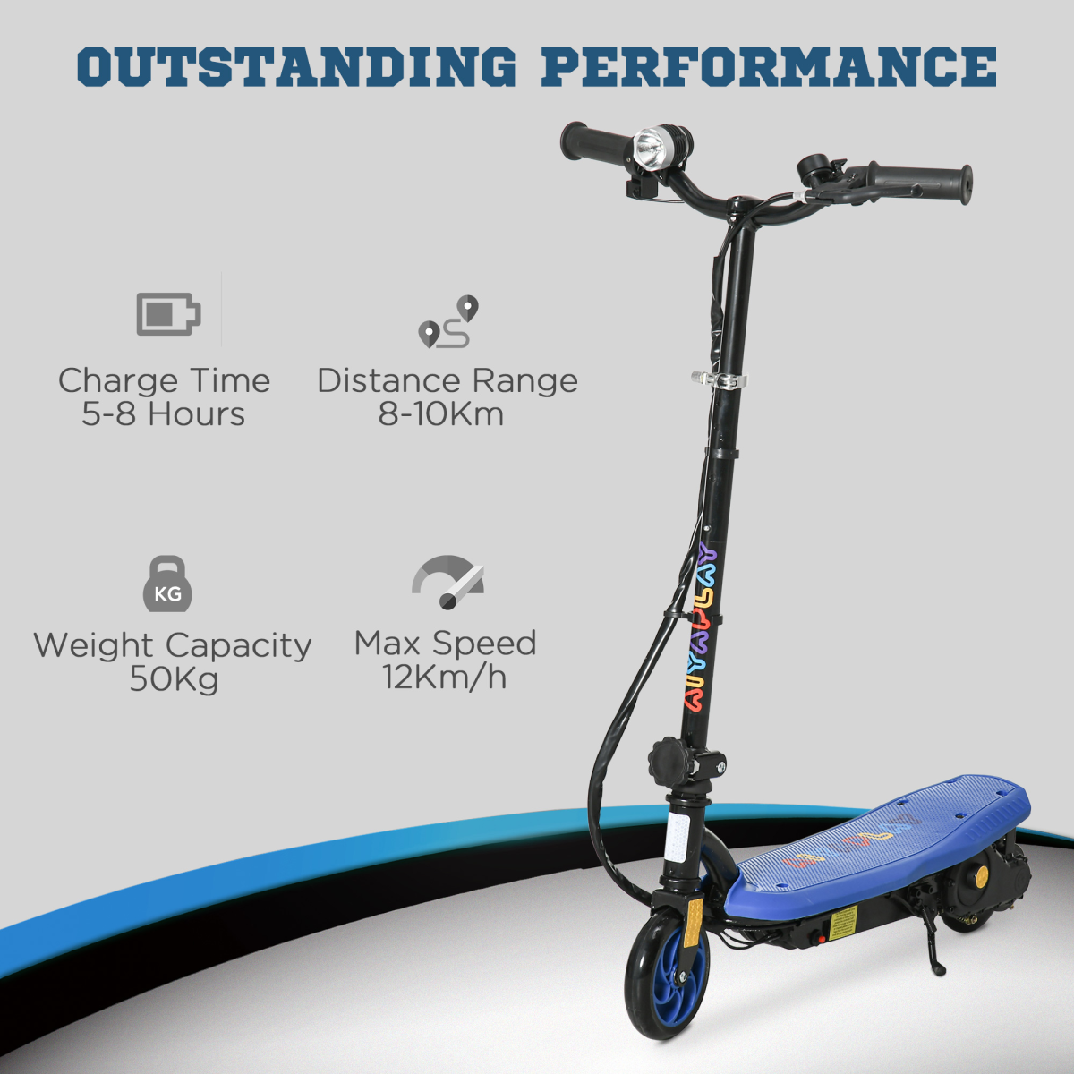 Folding Electric Scooter E-Scooter w/ LED Headlight, for Ages 7-14 Years - Blue