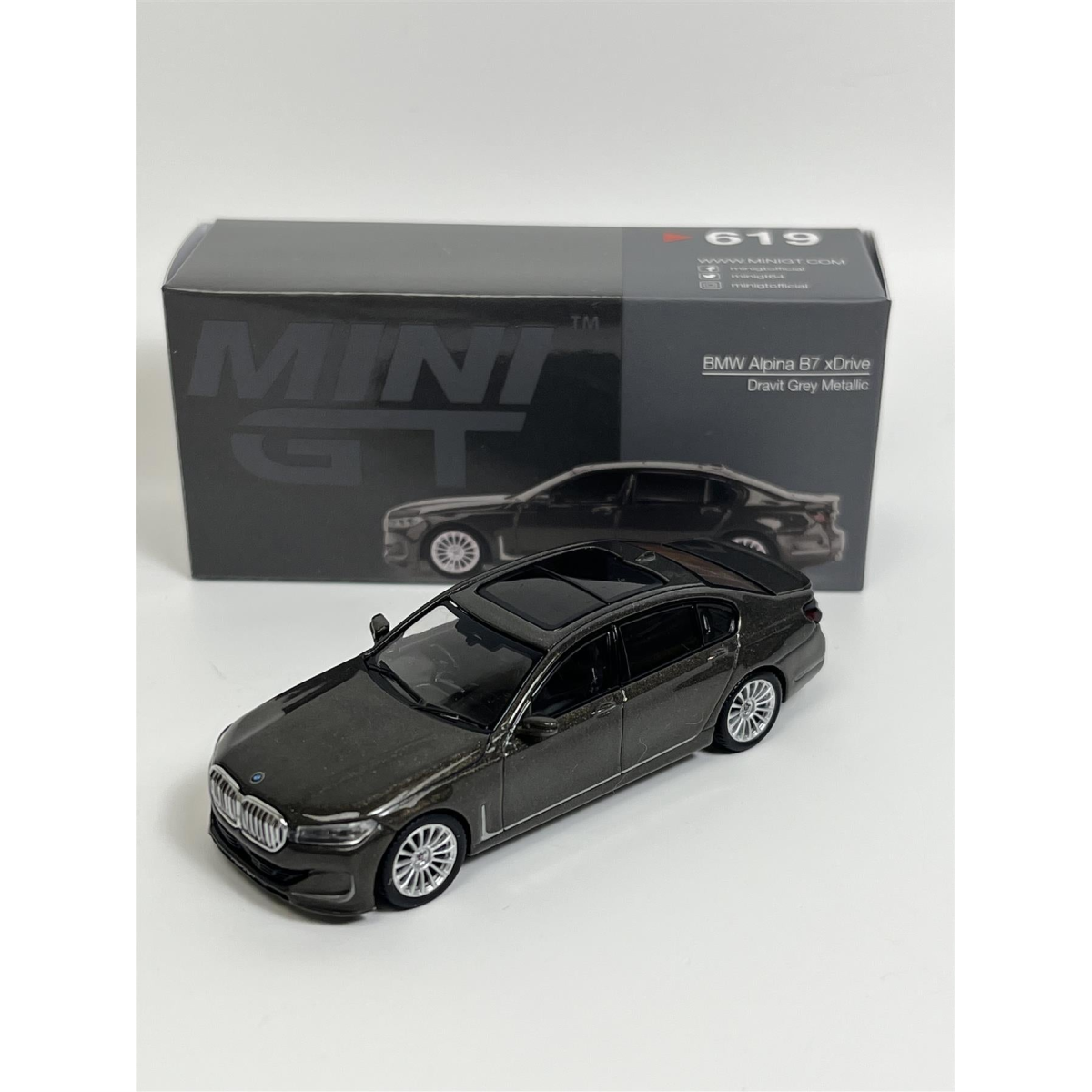 BMW Alpina B7 xDrive Dravit Grey Metallic RHD 1:64 Scale Mini GT MGT00619R