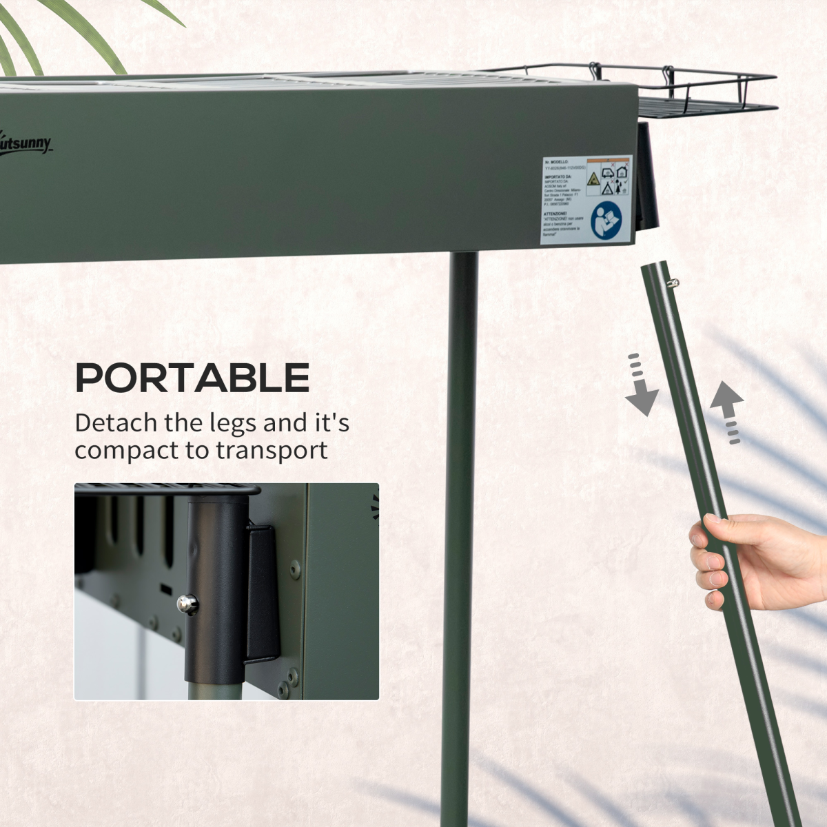 - Metal structure, portable bbq design: A strong-cased charcoal barbecue. Removable legs to carry and store easily.