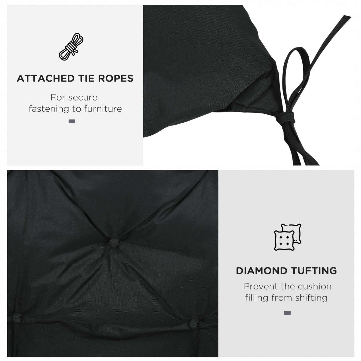 2 Seater Garden Bench Cushion Outdoor Seat Pad with Ties Black
