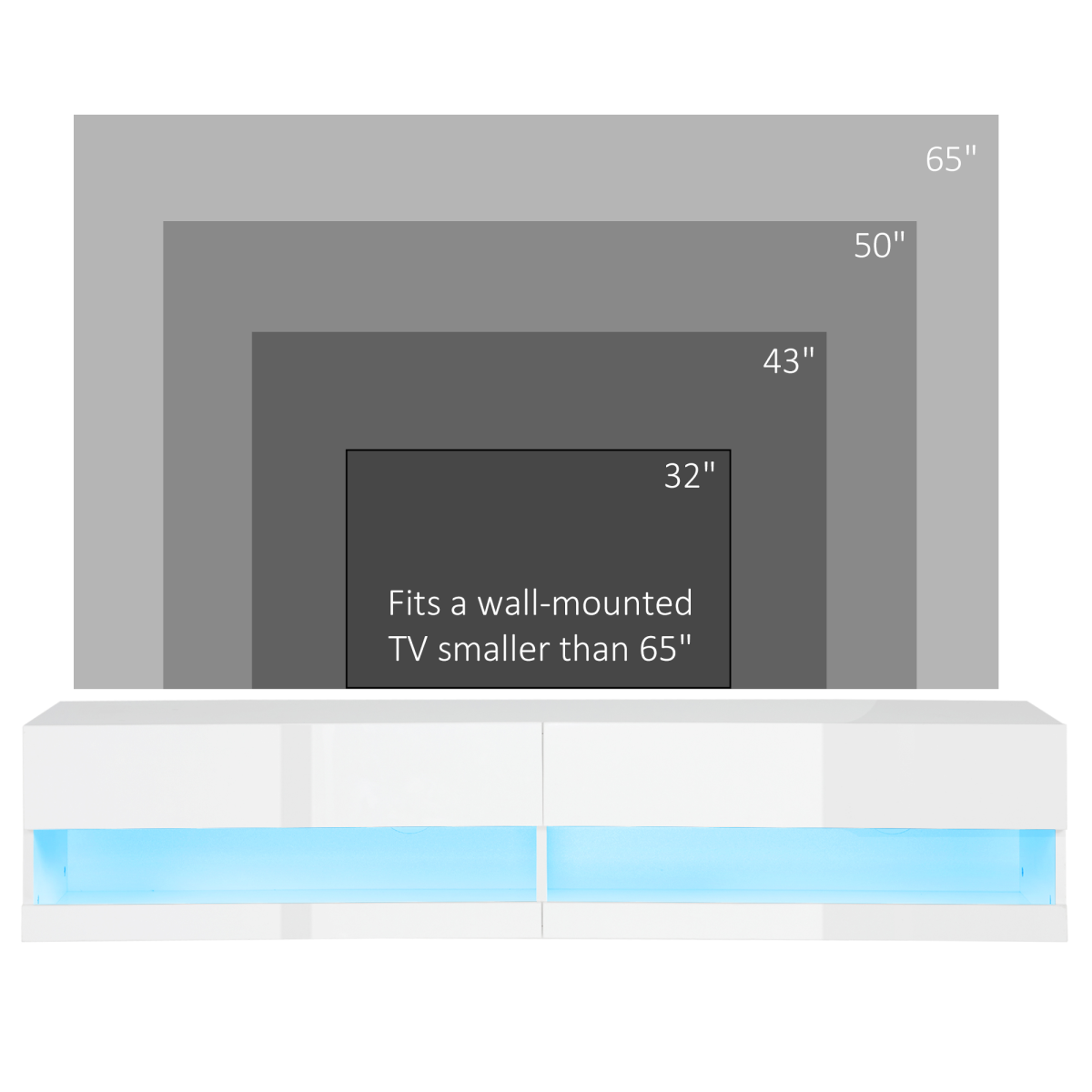 High Gloss TV Stand Unit Wall Mounted with Storage and LED Lights, White