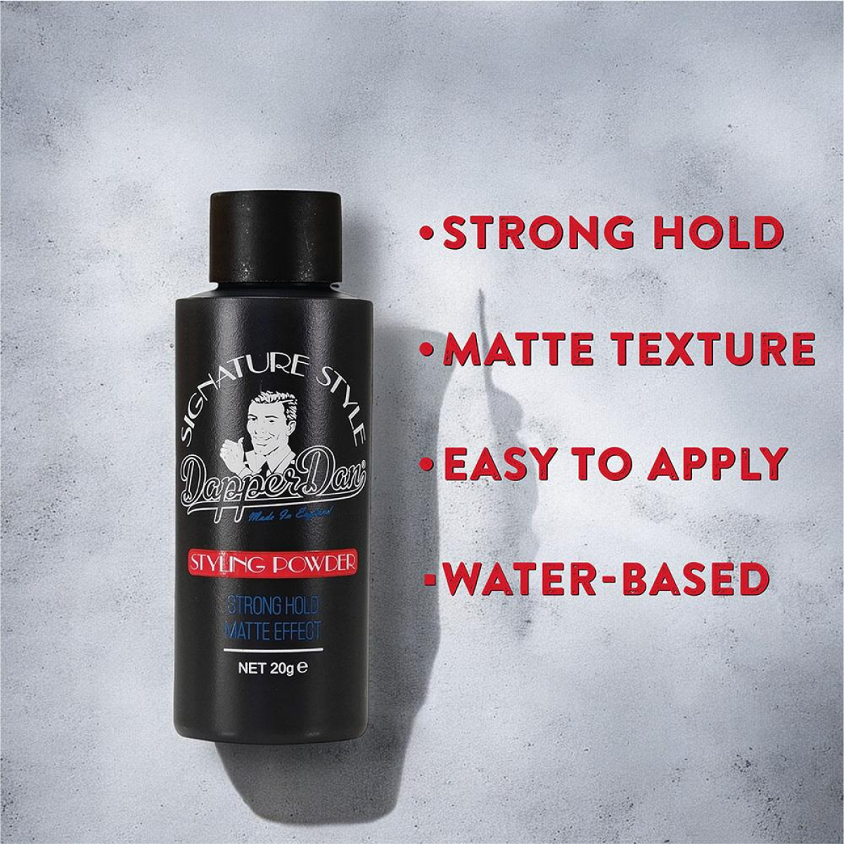The Dapper Dan Signature Style Styling Powder offers unrivalled volume and hold, as well as providing superb natural matte texture and a fantastic thickening effect. The Signature Styling Powder makes your styling routine as quick and easy as possible thanks to its easy application, all the while giving you the hold you need to last all day. Fragrance, Unscented.