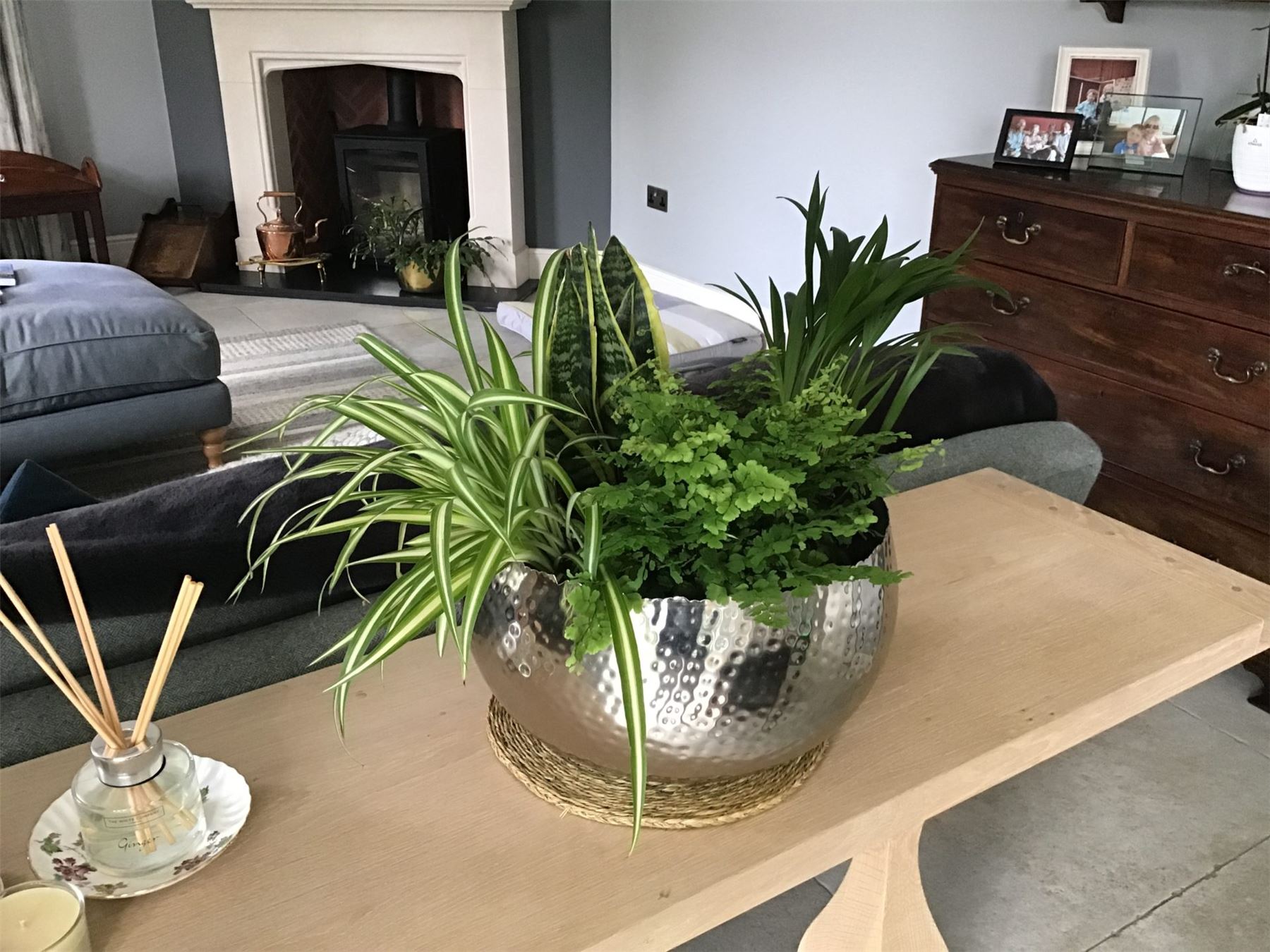 Extra large metal bowl. Can be used for display or plants. This metal planter measures 32cm wide x 20cm high. It is made of metal with a hammered finish. The inner diameter is 30cm (so this will fit any plants and looks brilliant as a centerpiece with multiple plants inside). These planters are all hand made in a rustic finish with intentional minor imperfections. As all these planters are hand made there are minor differences from one to another and each one is slightly unique. The price is for the planter only- but we have included some pictures to show how this would look with a couple of our plants to give an idea of size (plants shown are all available separately). We have this style of planter available in a range of colours and sizes and it is also available with a smooth or curved top edge. Intended for indoor use only.