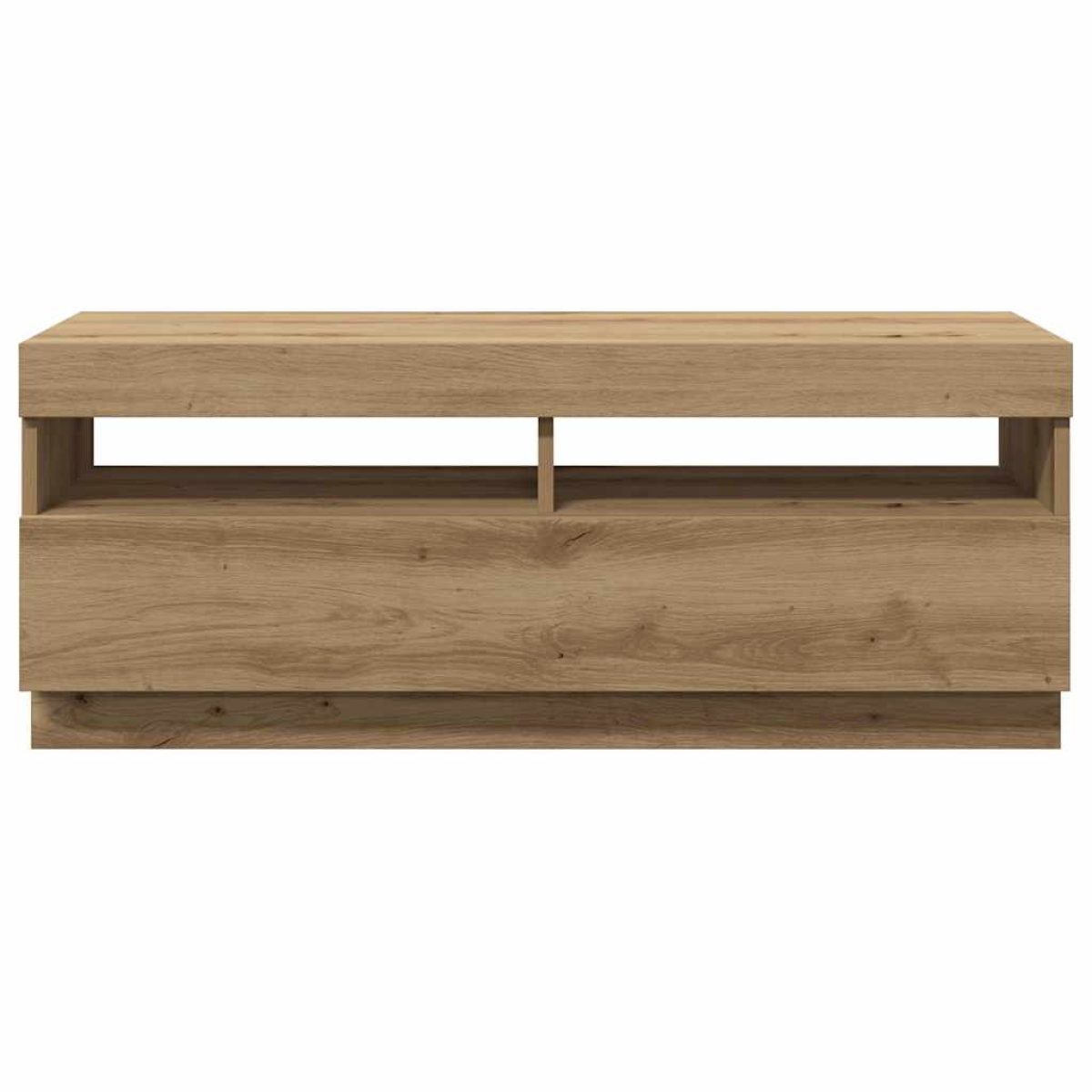 Featuring a trendy yet practical design, this sturdy TV cabinet will become a focal point of your room.Durable material: The engineered wood is of exceptional quality with smooth surface and also features strength, stability and resistance to moisture.RGB LED lights: This TV stand features RGB LED lights, which have different menus to change the colour of lights and let the colour adjust automatically differently. The LED lights underline the modern look and contribute to the trendy feeling.Ample storage space: The storage space makes it easy to keep things organised.Displaying function: The top layer of the floating TV unit are perfect for placing your framed photos, potted plants, and other decorative items.Good to know:The product has a USB connector that requires a certified 5V USB power source (not included).