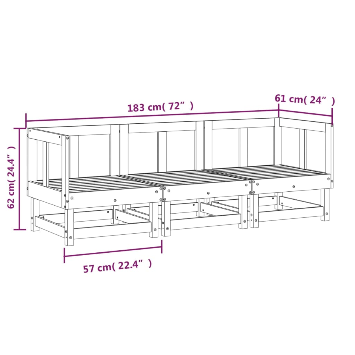 - Garden middle sofa dimensions: 61 x 60.5 x 62 cm (W x D x H)